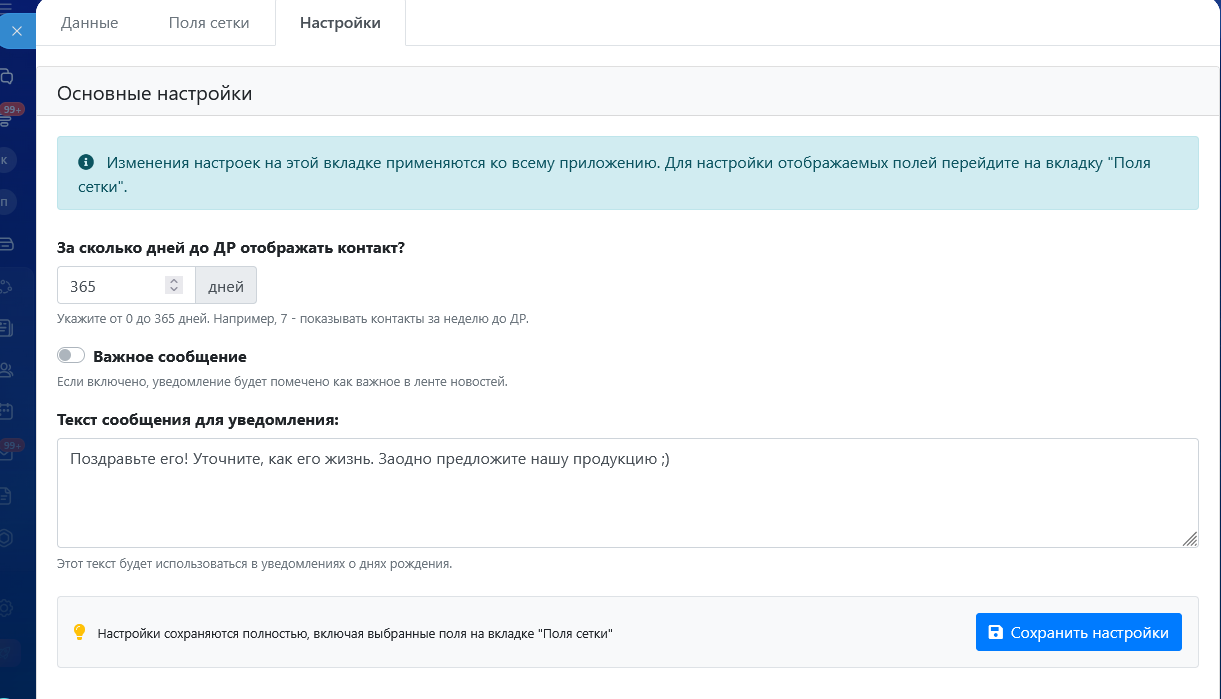 Наступающие дни рождения контактов CRM у вас перед глазами!