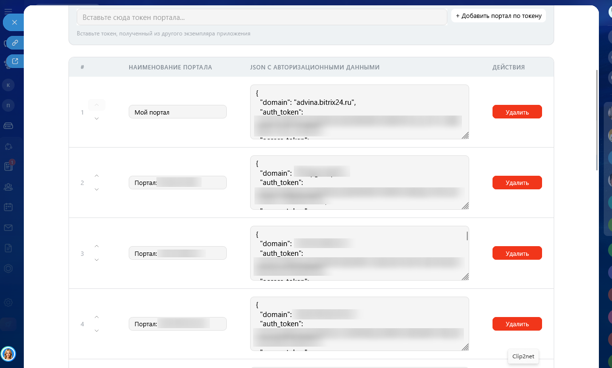 Режим «Клиентский портал»: Позволяет безопасно сгенерировать токен доступа для подключения этого портала к основному.