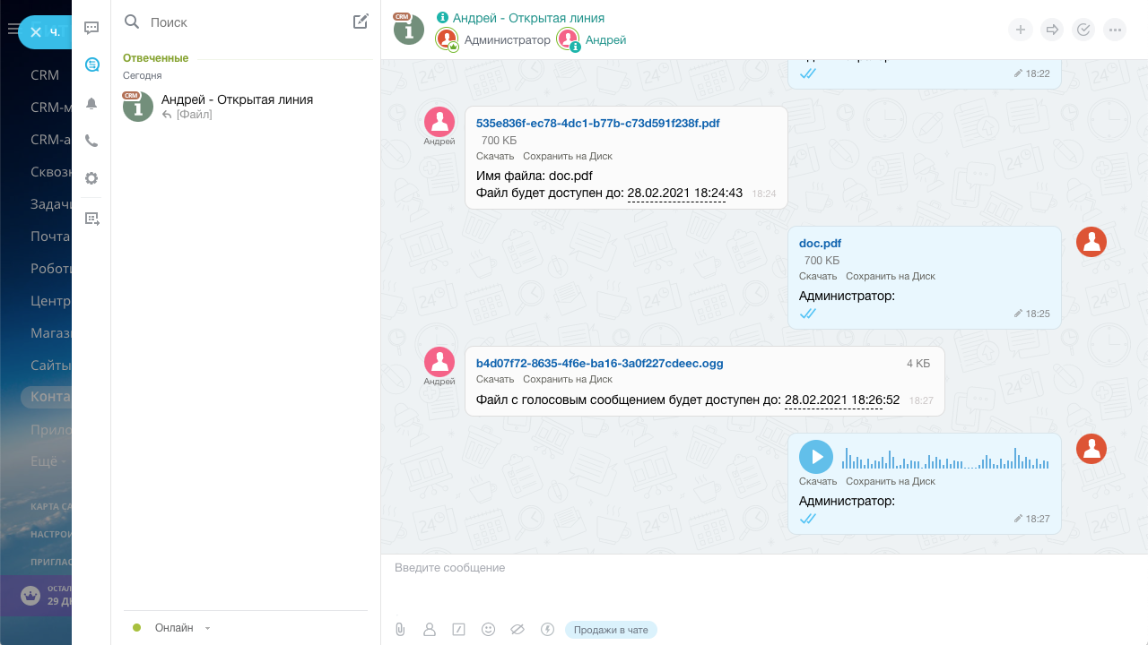 - Все сообщения из WhatsApp поступают в открытую линию Битрикс24. Обрабатываются любые сообщения: текстовые сообщения, изображения, видео, голосовые сообщения, файлы, координаты местоположения. Обработка сообщений производится в соответствии с настройками открытой линии.