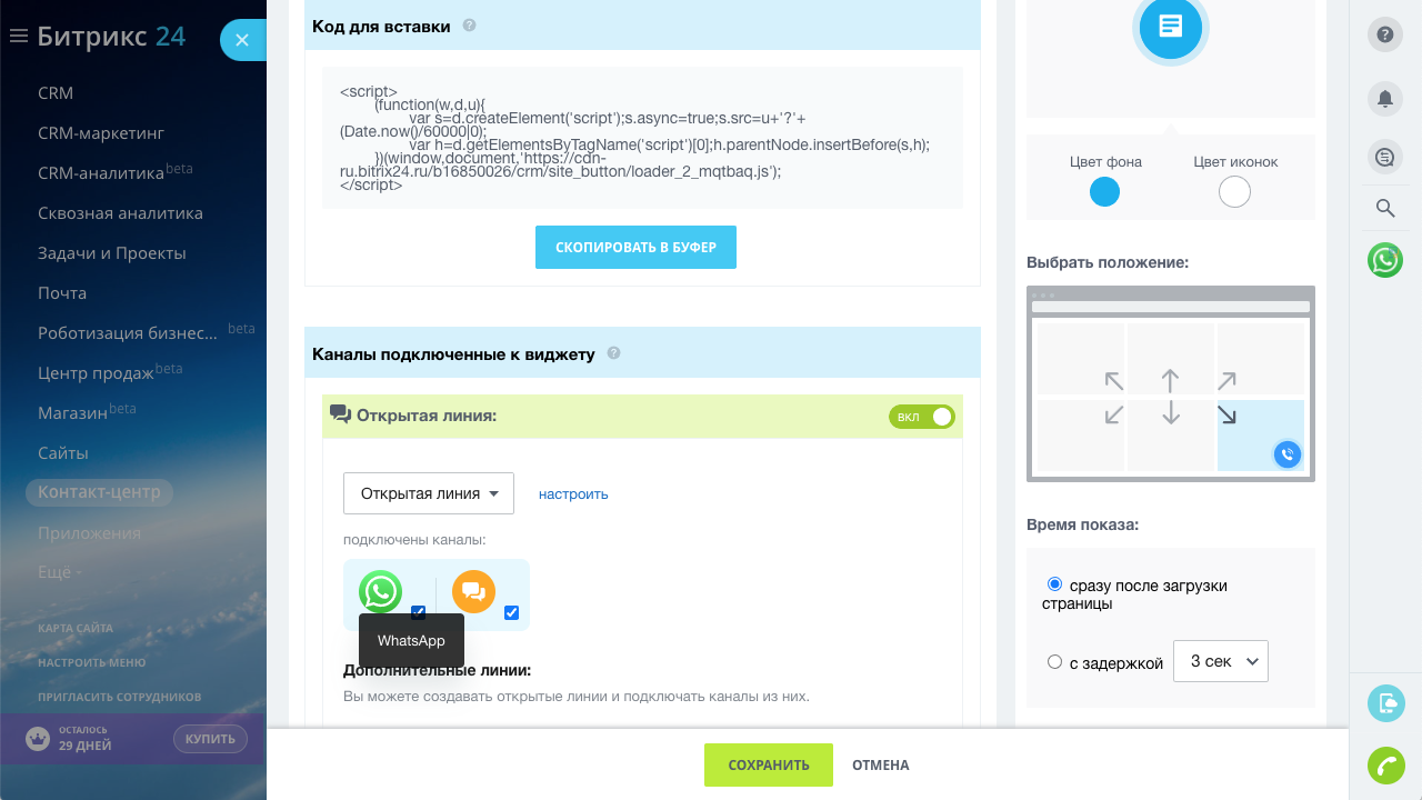 - Поддержка пользователей приложения 24/7. Наш чат поддержки автоматически добавляется в Открытую линию вашего Битрикс24 при установке приложения.