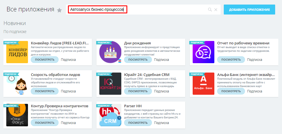Приложение "Автозапуск бизнес-процессов" может автоматически запускать один или несколько бизнес-процессов, как только в Лиде, Контакте или Сделке создается Дело (Встреча, Звонок, Задача, Почтовое письмо).