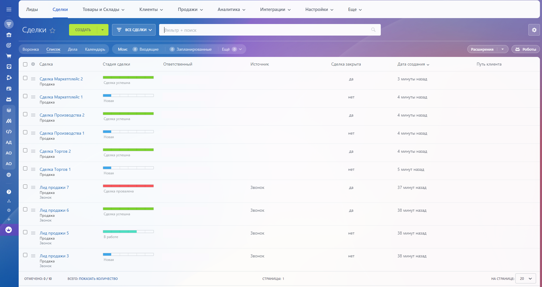 - Выберите необходимые этапы Сделок.