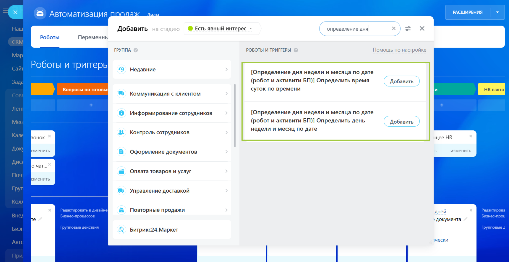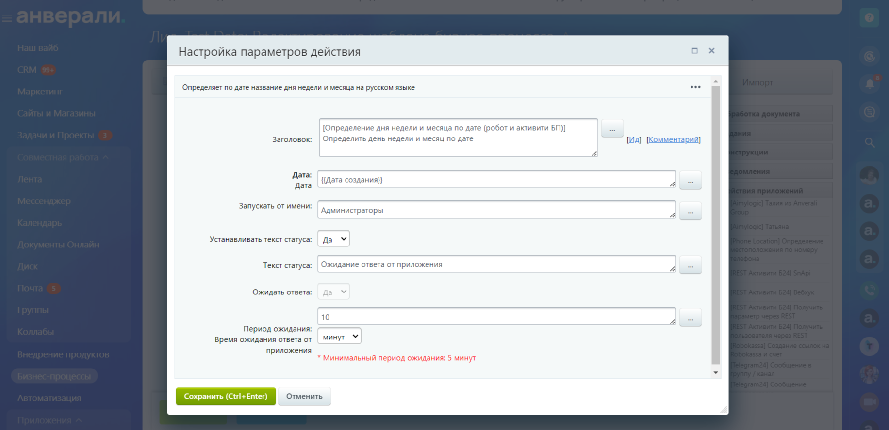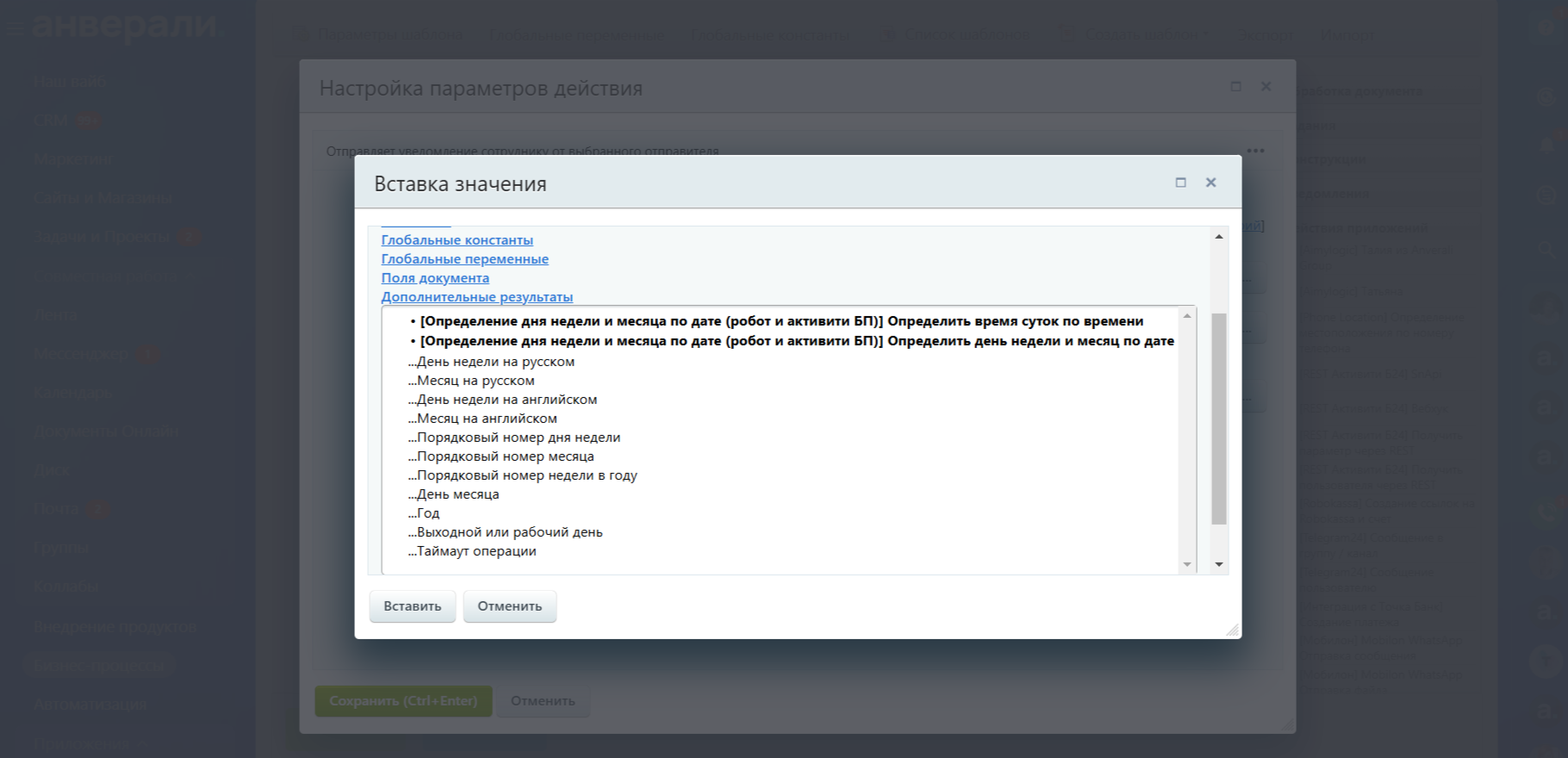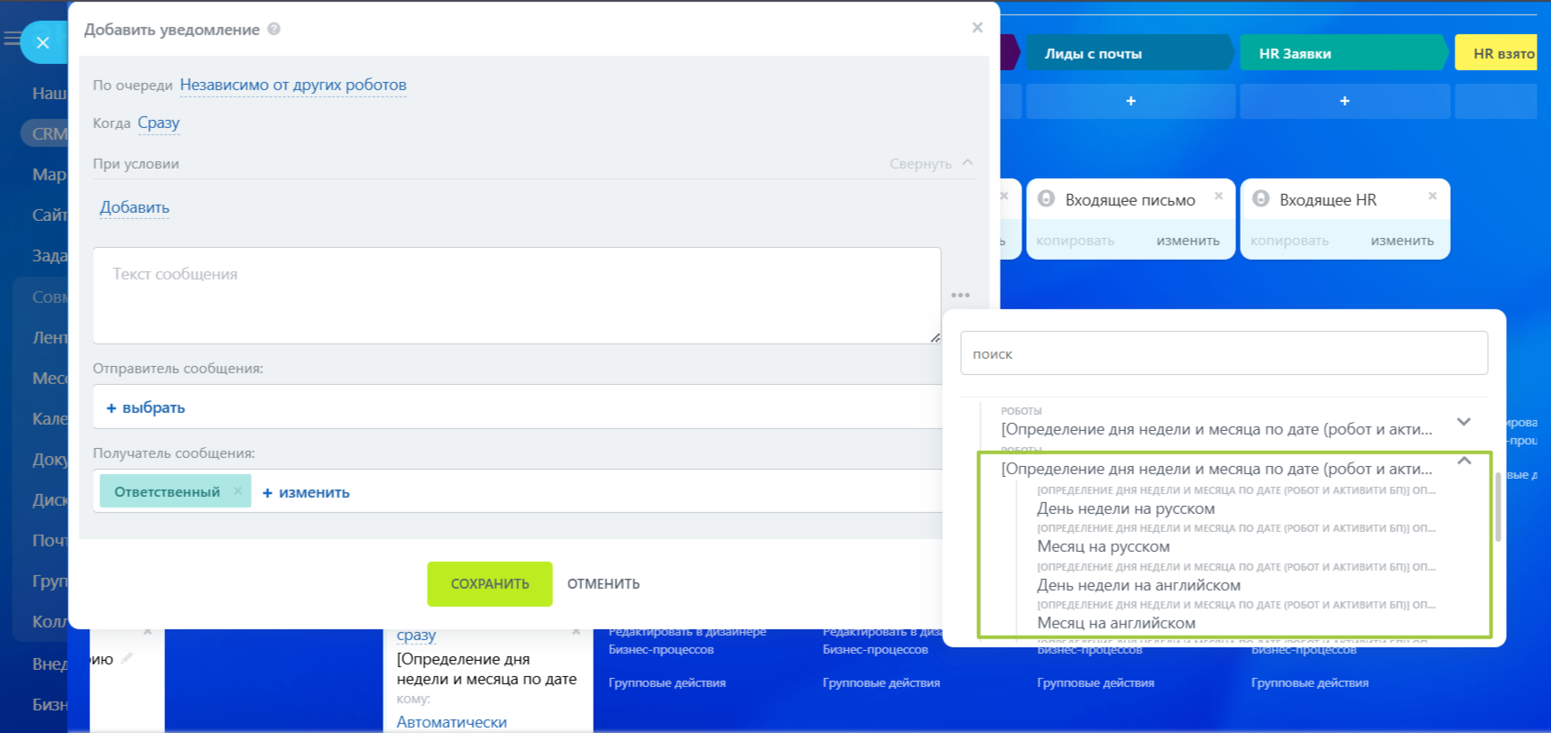 Определение дня недели и месяца по дате (робот и активити БП)