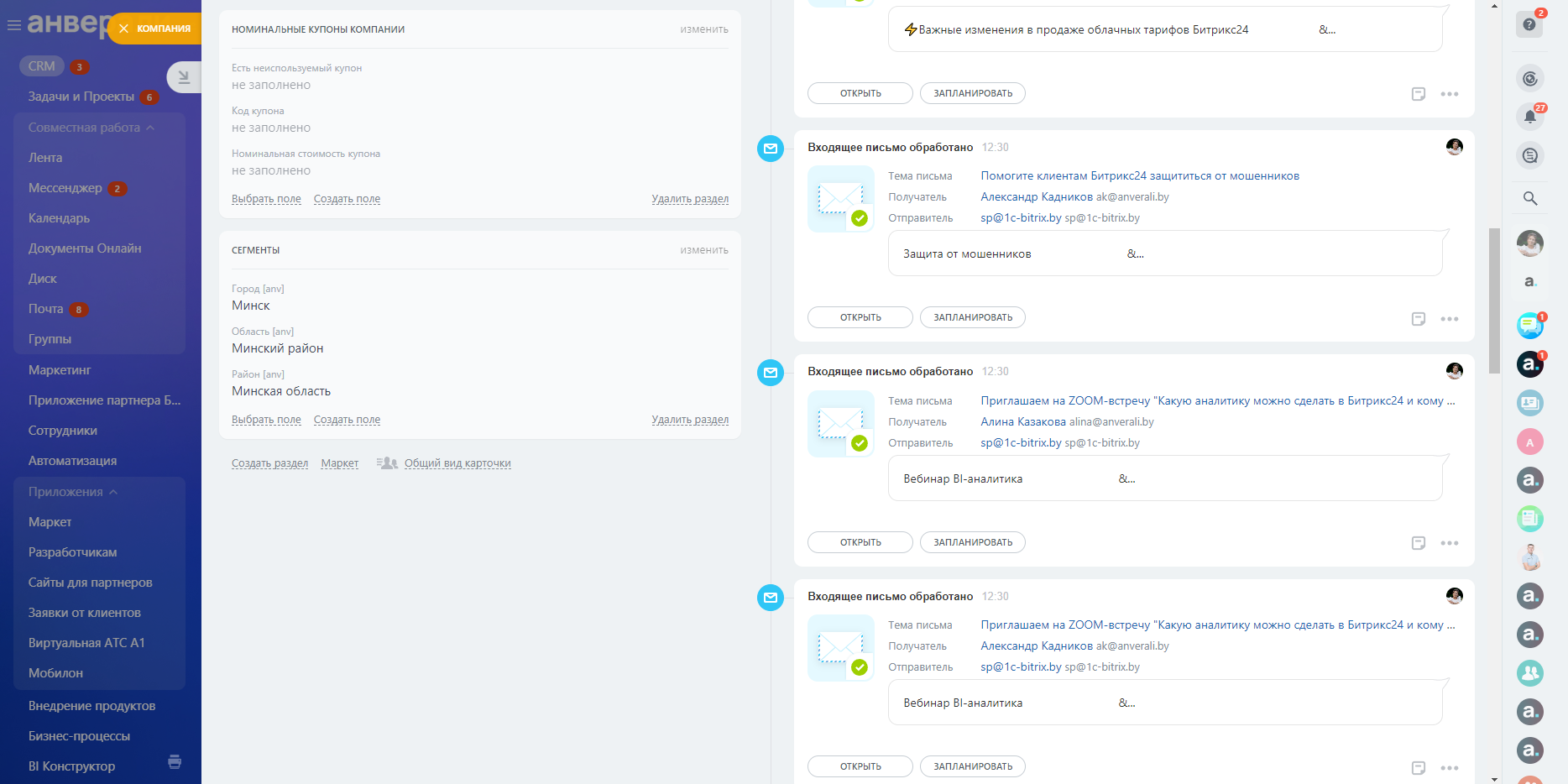 Приложение поможет автоматически сегментировать базу контактов и компаний на основании заполненного поля "Город" по Регионам и Федеральным округам.