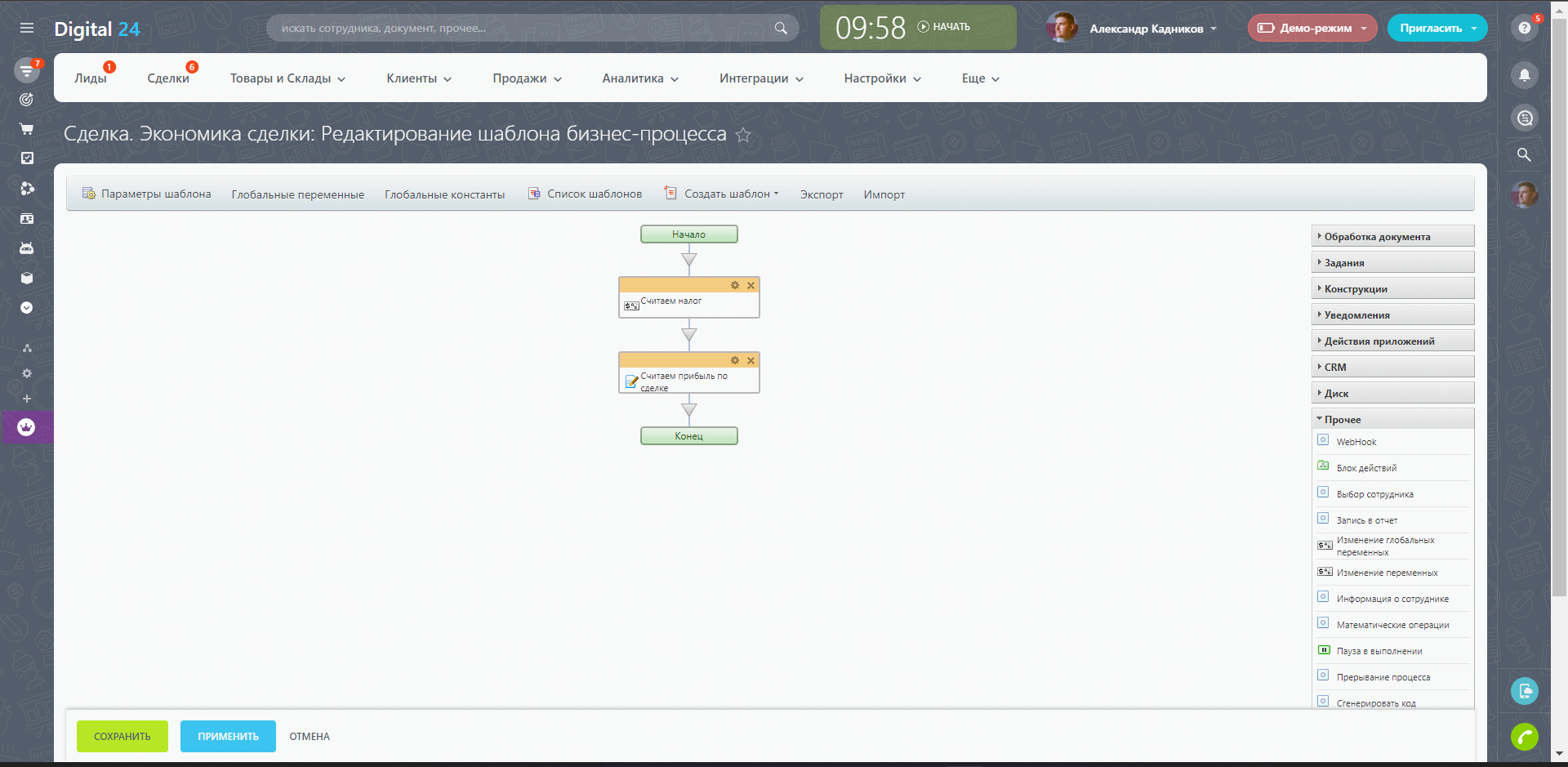 Данное решение доступно на тарифах Базовый, Стандартный, Профессиональный и Энтерпрайз. Решение полноценно будет работать на тарифах Профессиональный и Энтерпрайз. На тарифе Стандартный не будет доступен автоматический расчет прибыли сделки. На тарифе «Базовый» будет доступна только одна воронка «Основная» и роботы в ней.