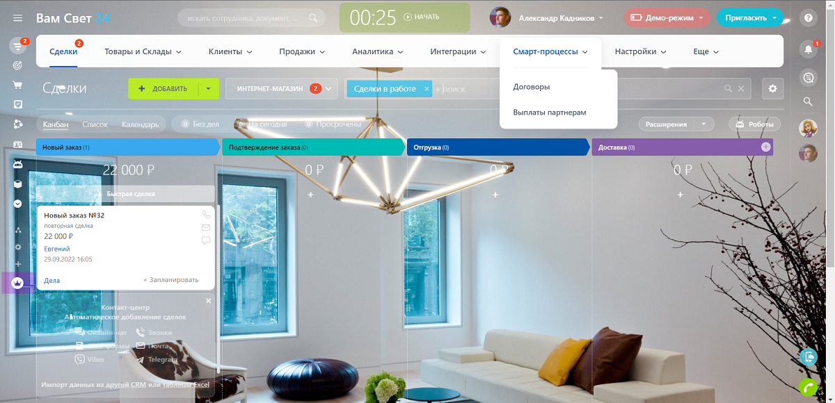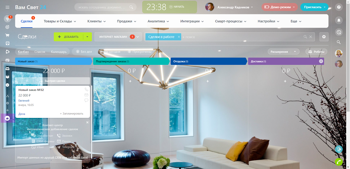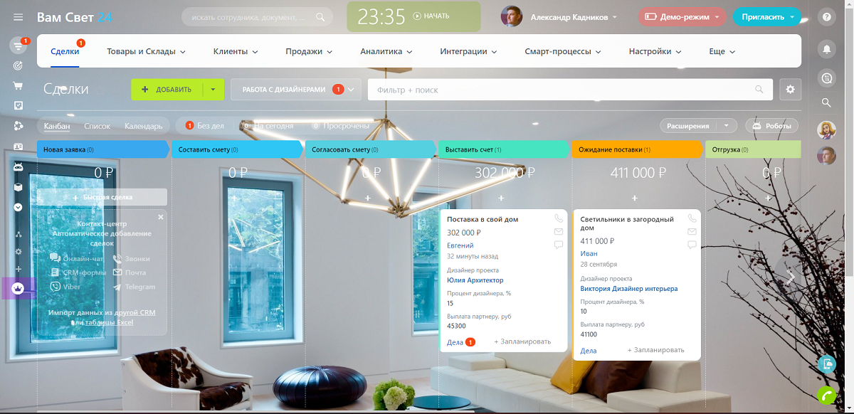 Готовое решение подойдет для компаний, занимающихся продажей светильников и реализует их через интернет-магазин, оптом или в партнерстве с дизайнерами и архитекторами. С помощью нашего решения вы сможете быстро запустить работу в CRM, начать отслеживать все обращения клиентов и получить полный контроль над отделом продаж, сэкономив на услугах внедрения.