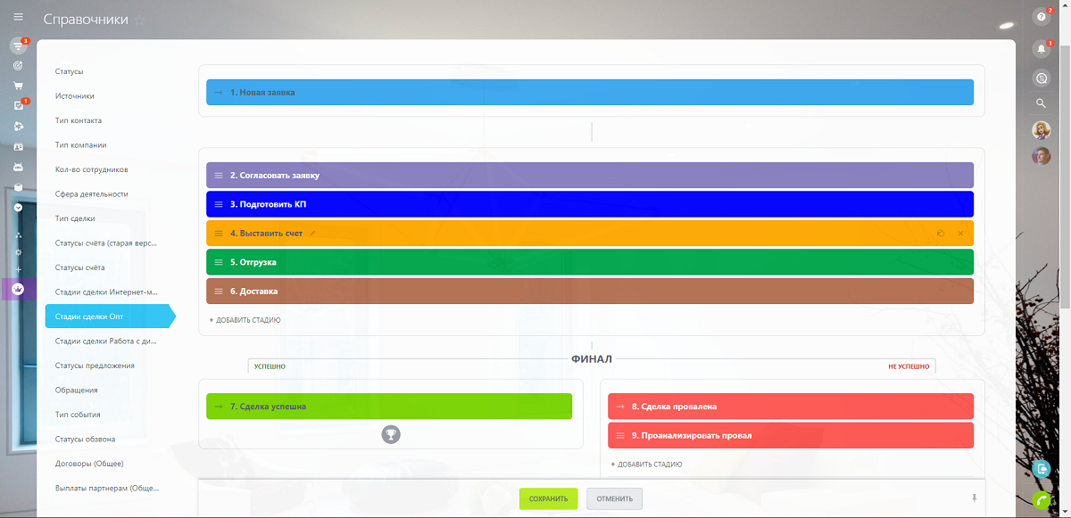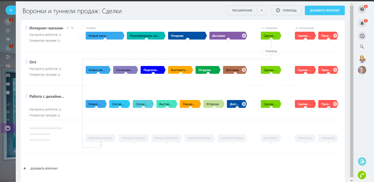 Вторая воронка сделок "Опт" для работы с оптовыми заказами