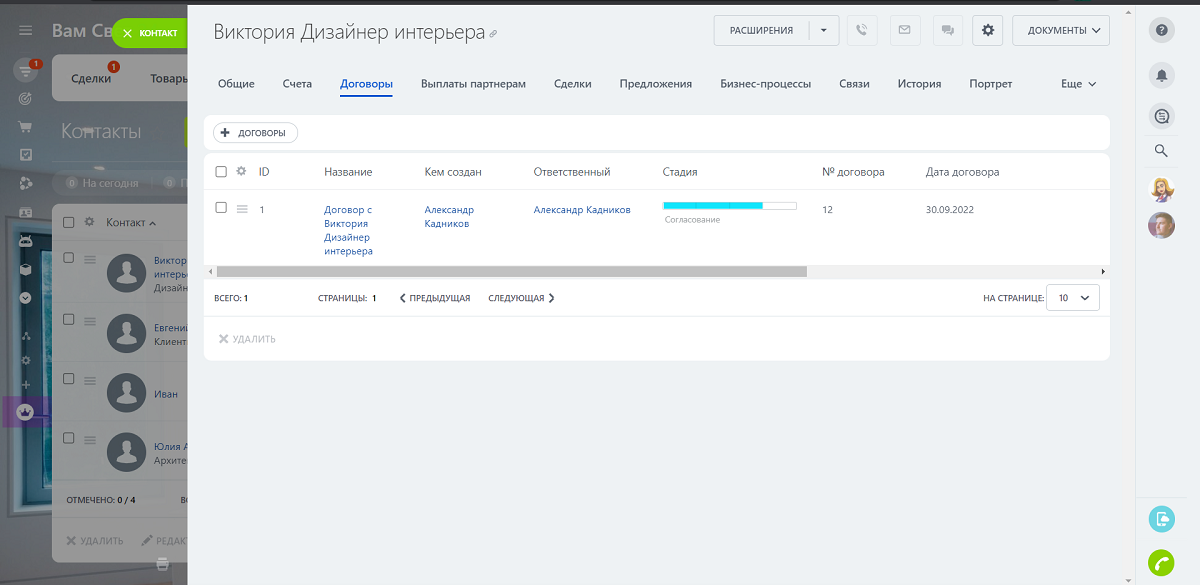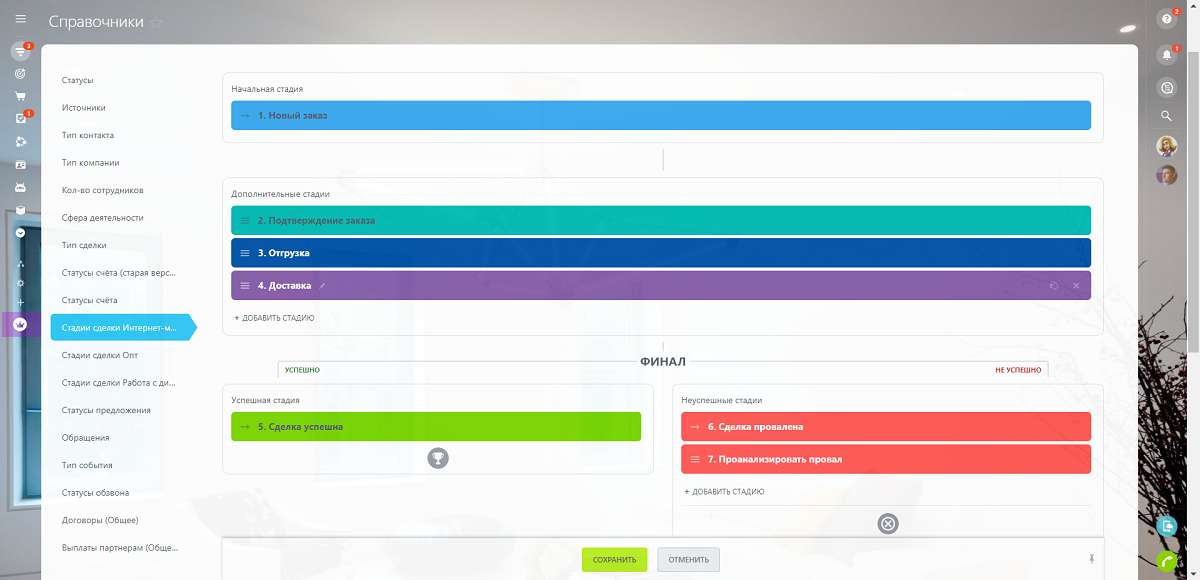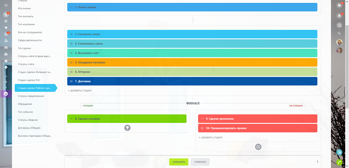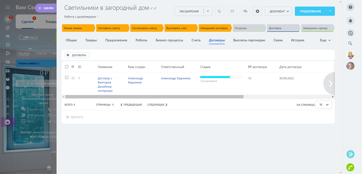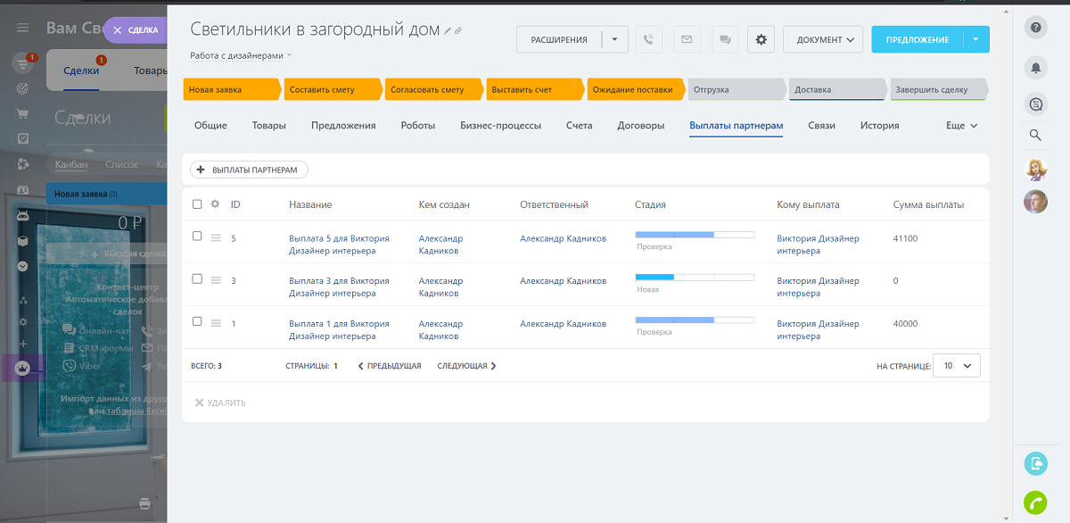 Доставка – на данной стадии находятся сделки, по которым осуществляется доставка.