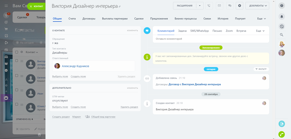 Третья воронка сделок "Работа с дизайнером" создана для ведения проектных сделок, в которых участвуют дизайнеры.