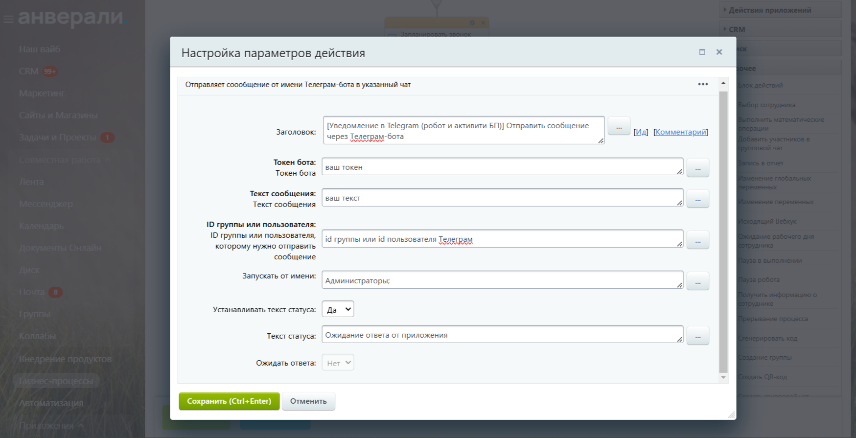Уведомление в Telegram (робот и активити БП)