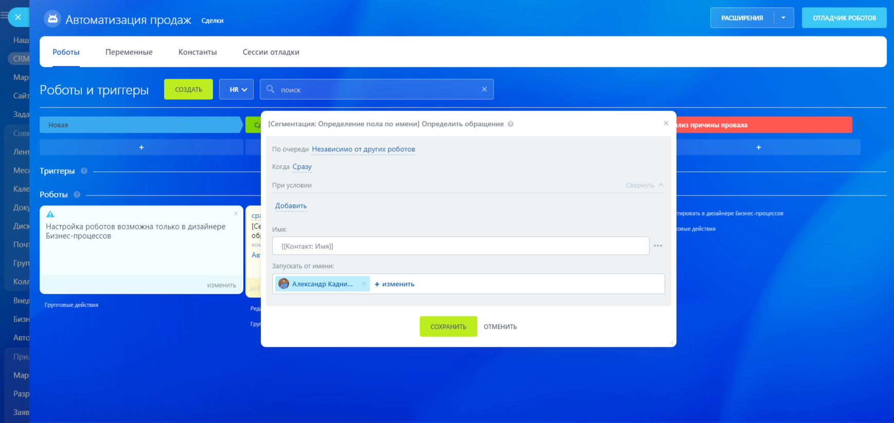 Изменение поля «Обращение» на основе определённого пола. Это позволит автоматически формировать обращения, соответствующие полу получателя.