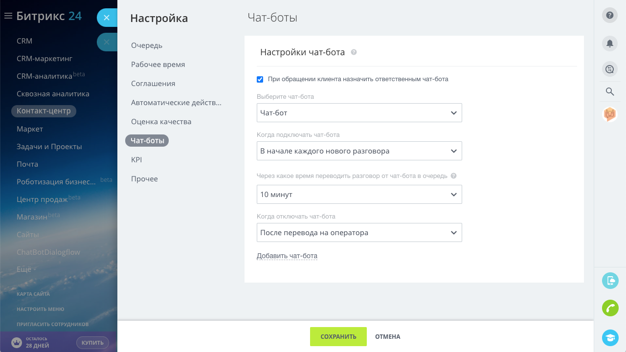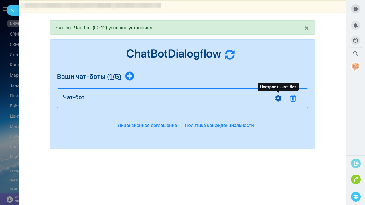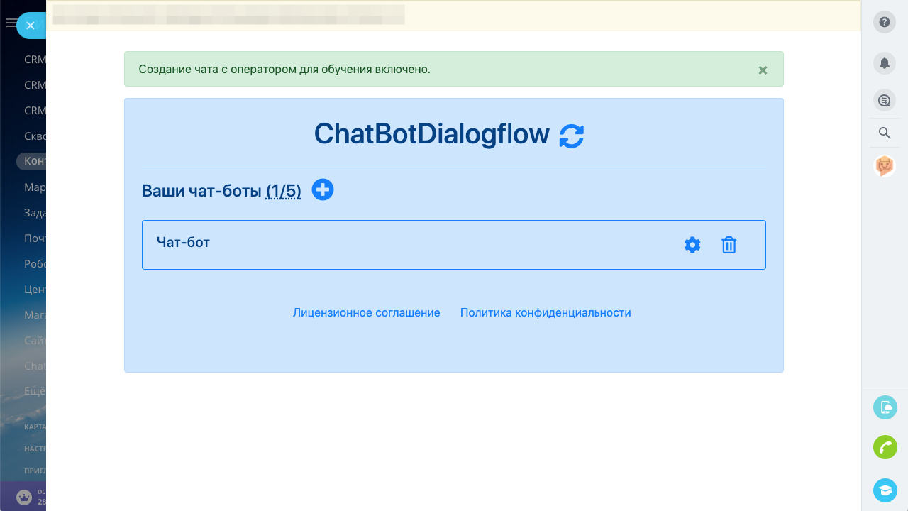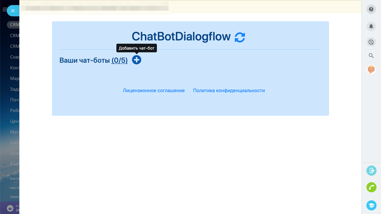Приложение ChatBotDialogflow позволяет создать до 5-ти чат-ботов для открытых линий Битрикс24 и интегрировать их с сервисом создания и обучения чат-ботов Dialogflow от компании Google.