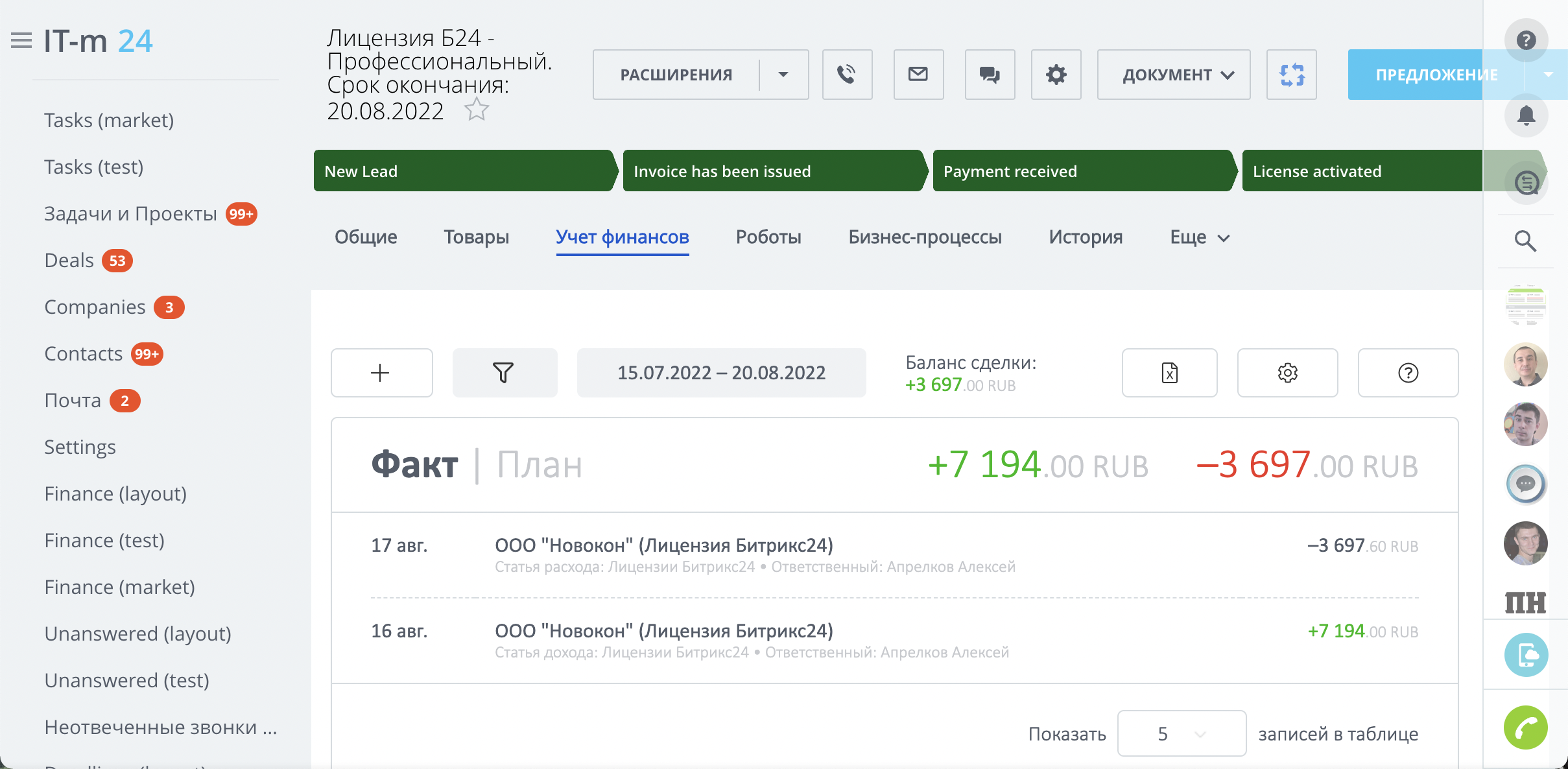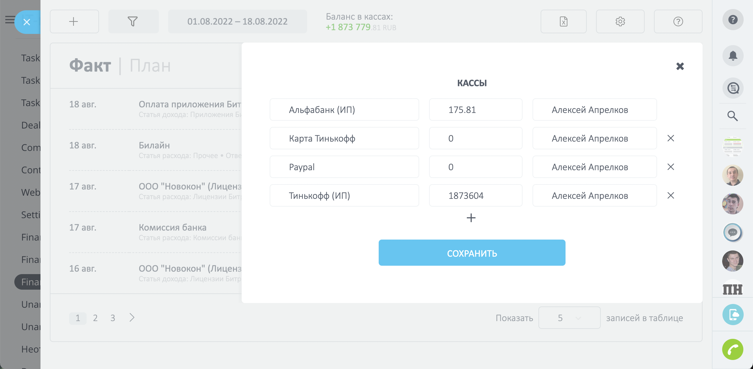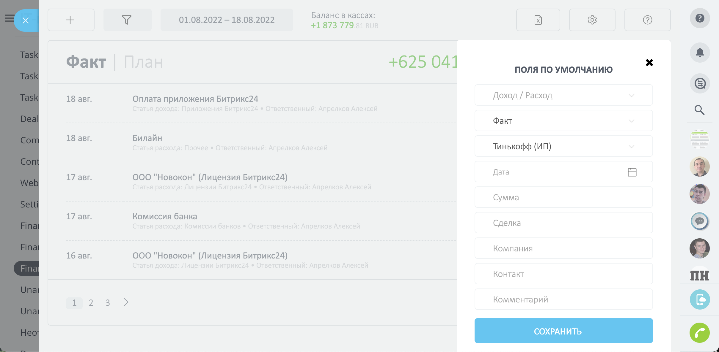 Фиксируя данные финансовых показателей, вы будете видеть прямо в своей CRM: