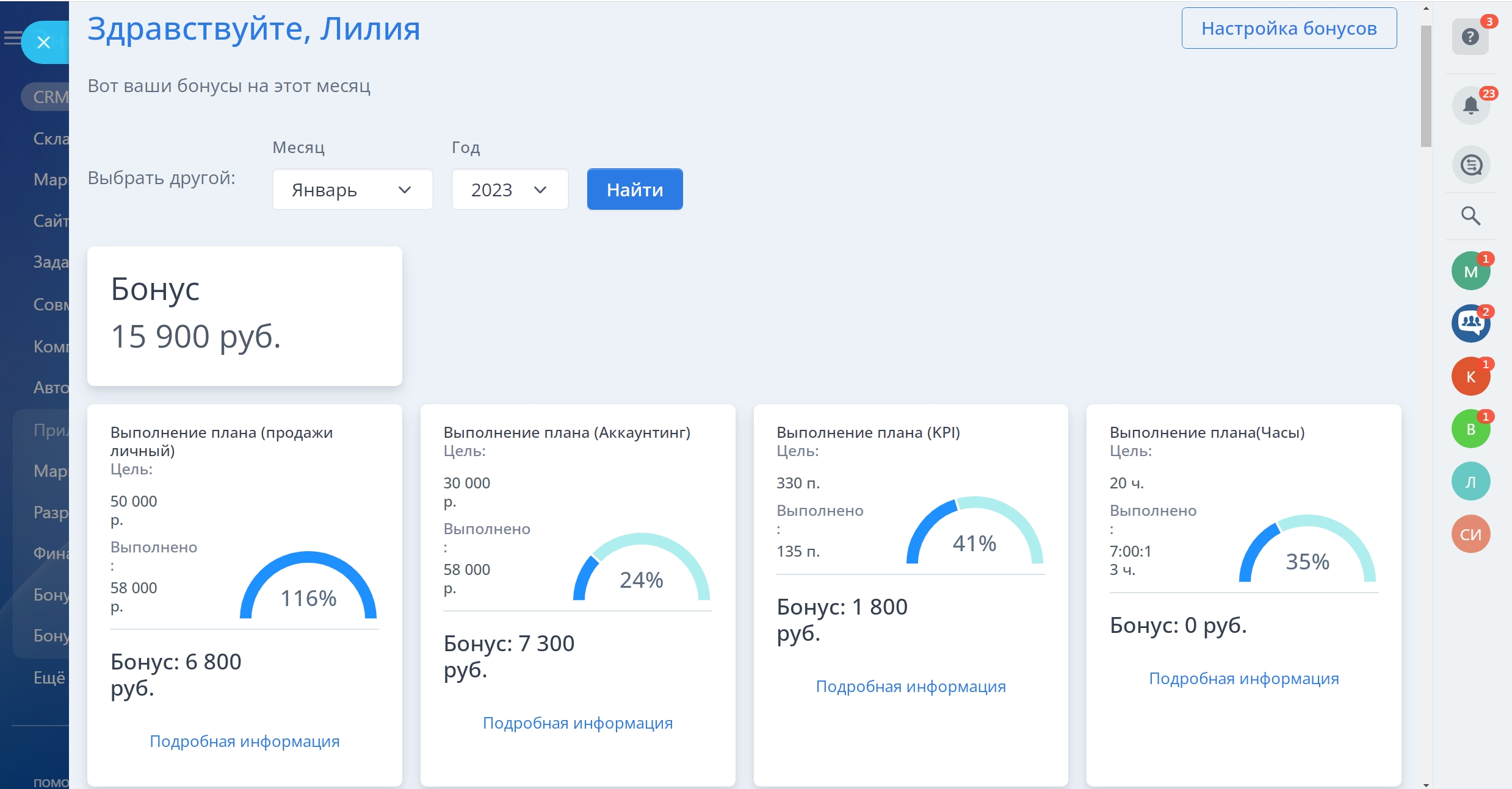 Бонус24 - Автоматический расчет бонусов за Продажи, Аккаунтинг, KPI и часы работы