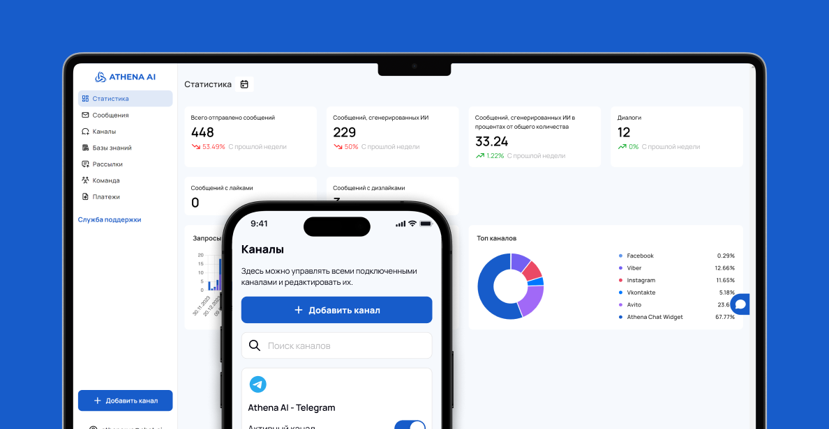 Athena AI с помощью ИИ отвечает по всем каналам, подключенным к Битрикс24.