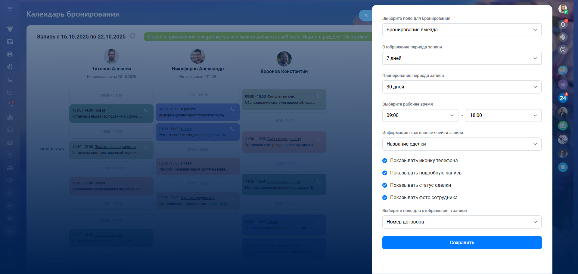 Приложение "Календарь бронирования" будет полезно, если вы активно используете поля с типом Бронирование ресурсов в Лидах или Сделках.