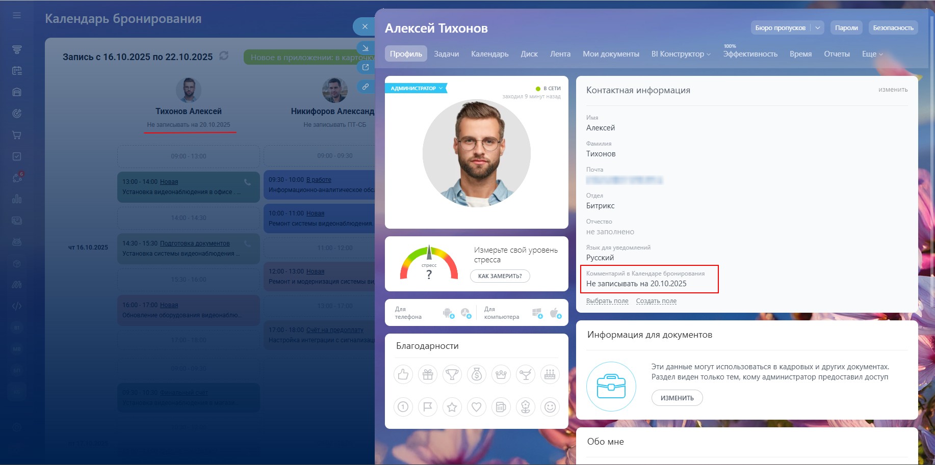 В карточке Контакта есть вкладка "Бронирование", на которой находится история записей бронирования для этого клиента.