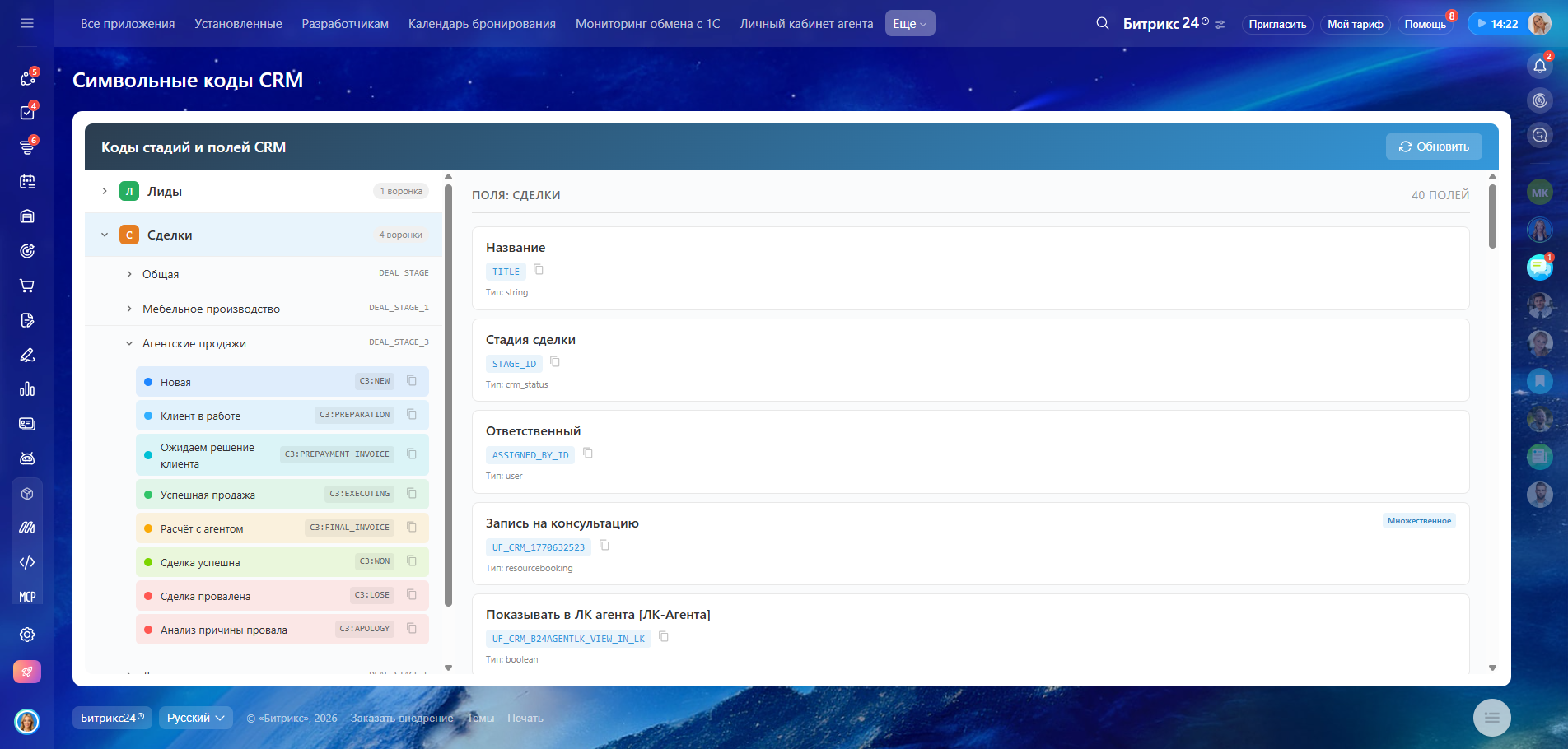Коды стадий, полей и воронок для интеграций и автоматизаций