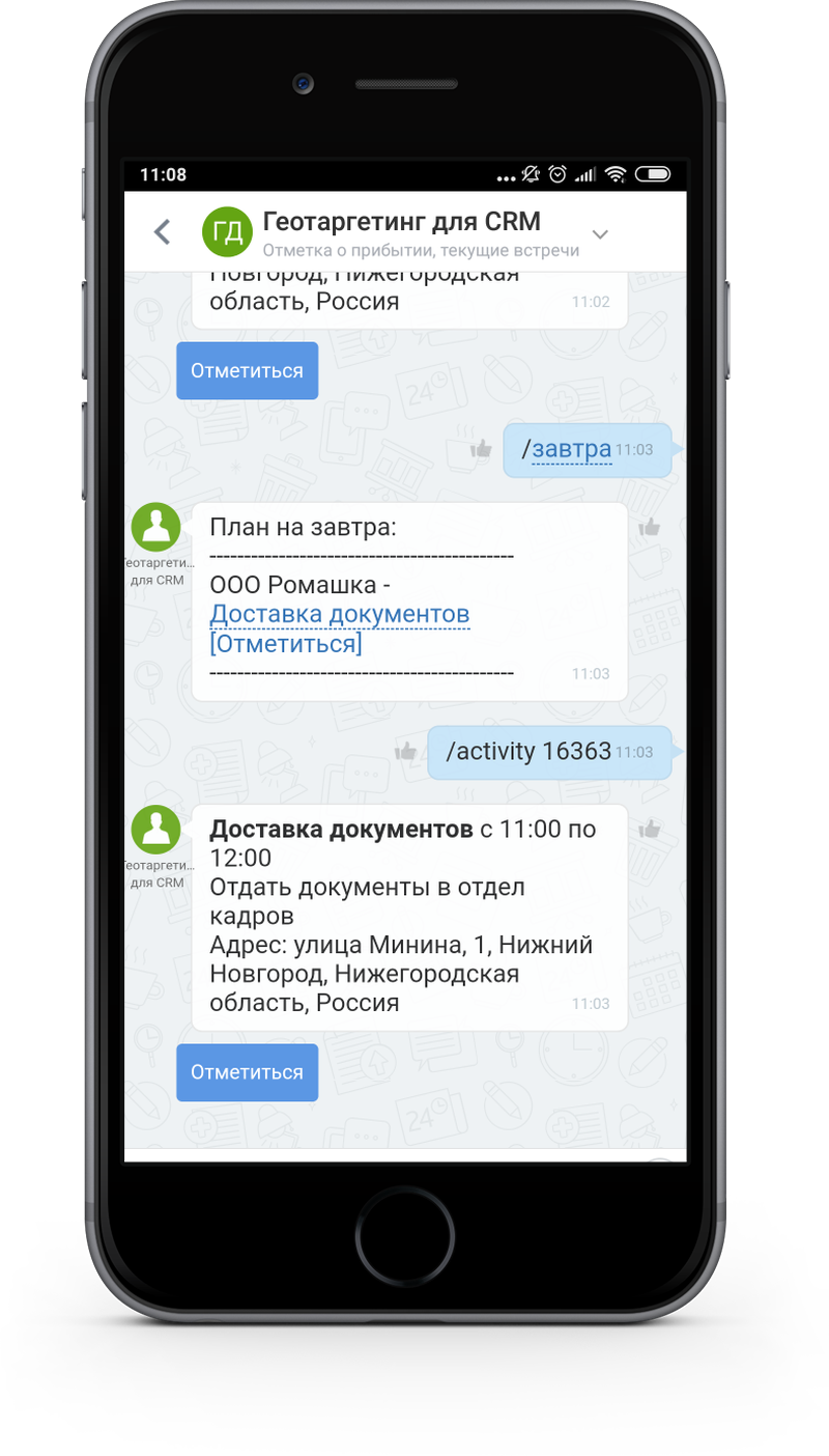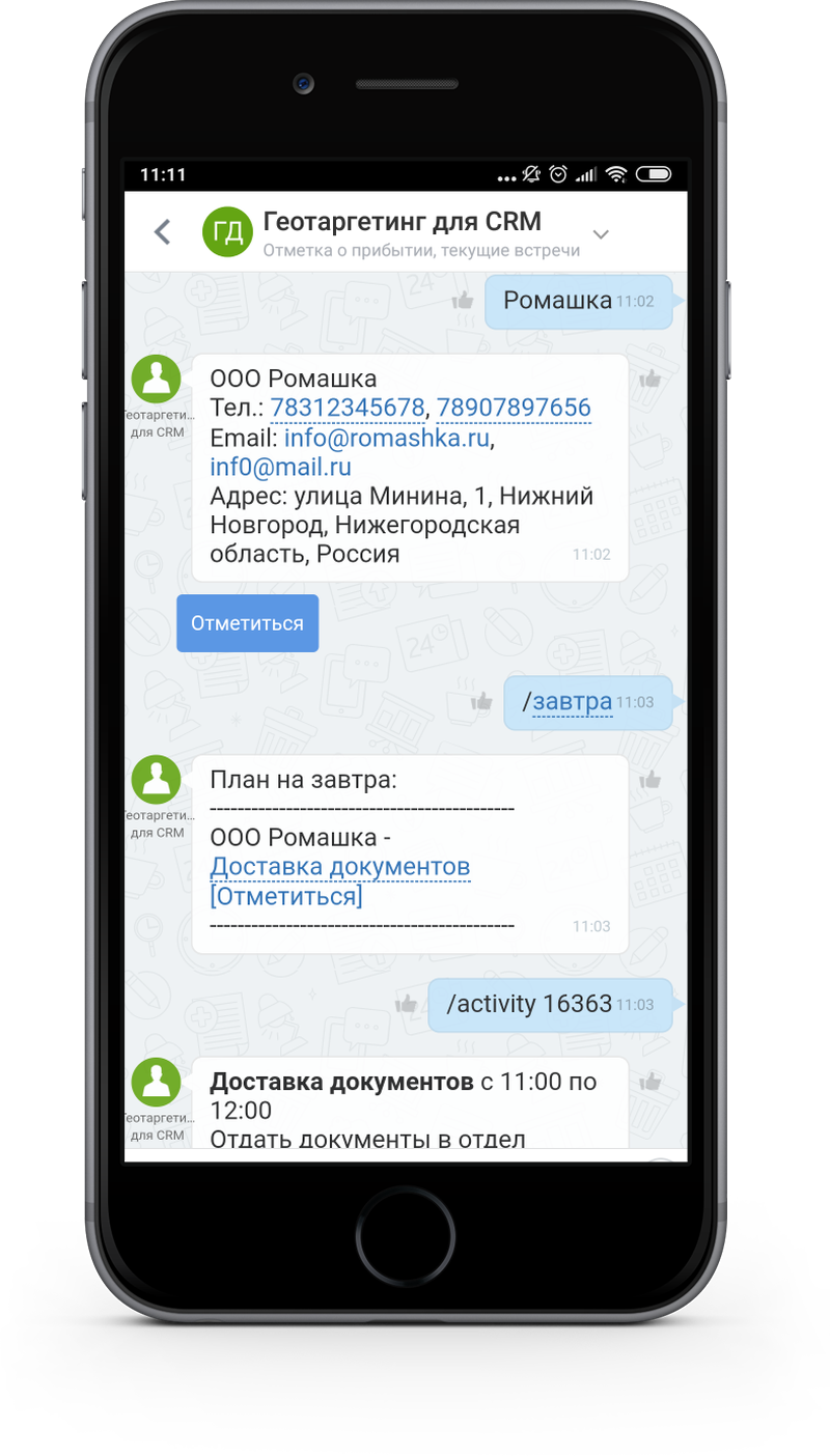 Геотаргетинг (чек-ин) для CRM + чат-бот