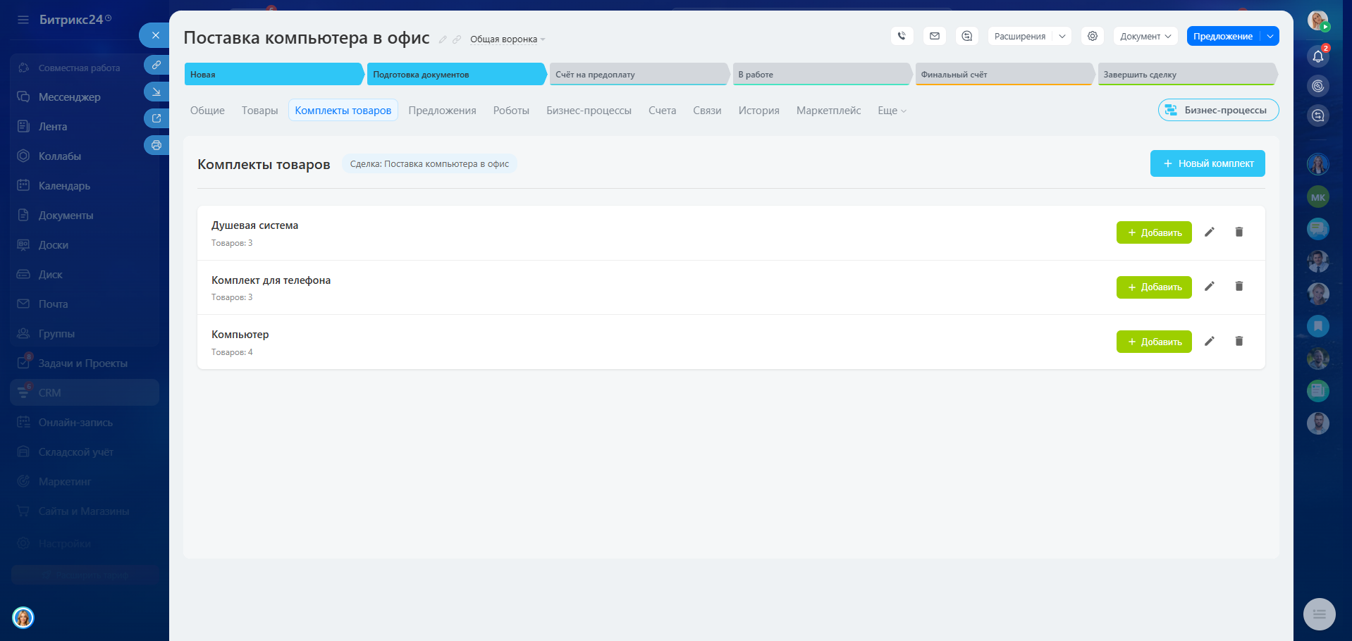 Менеджер сможет быстро добавить весь комплект в сделку.