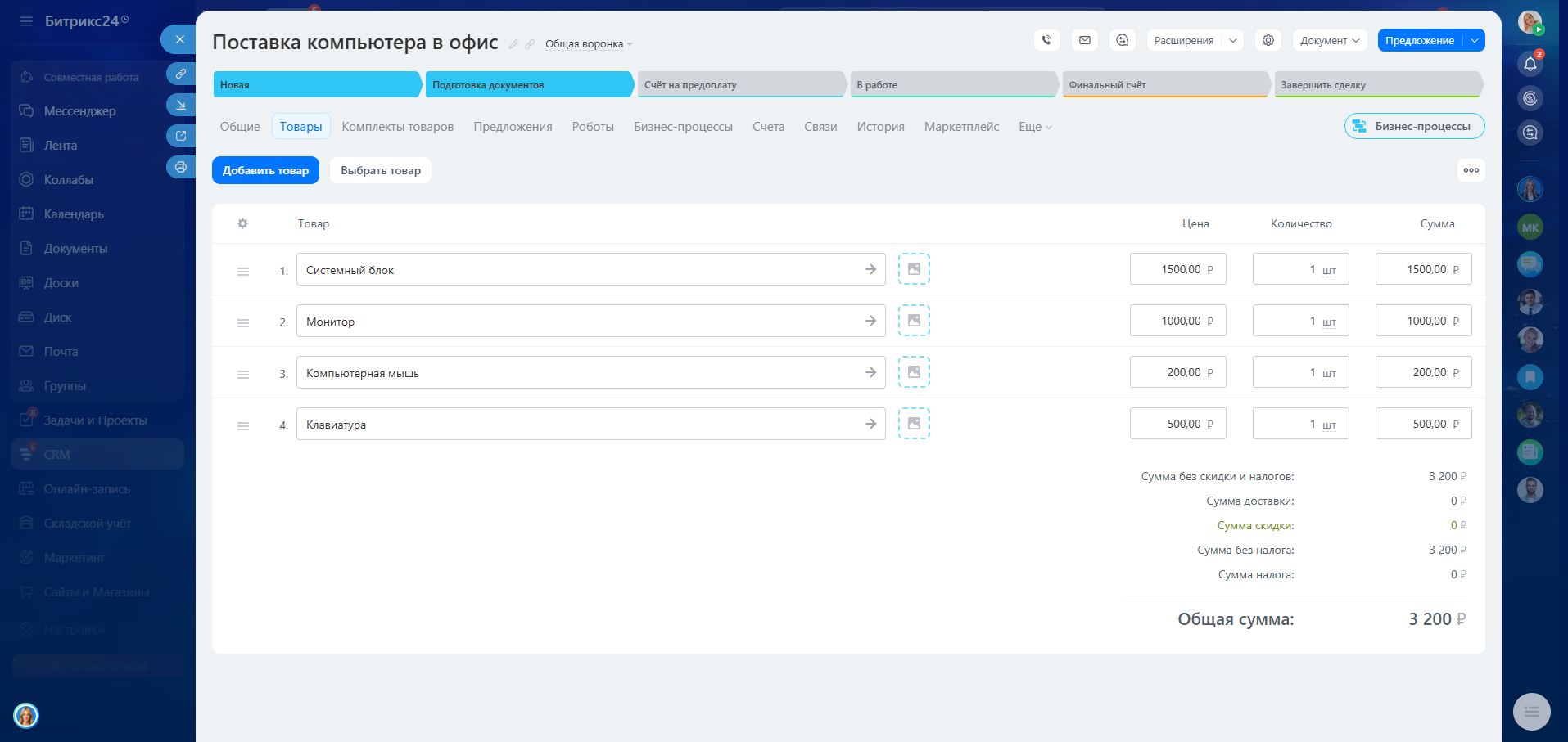 В результате добавление товаров в сделку занимает всего несколько секунд.