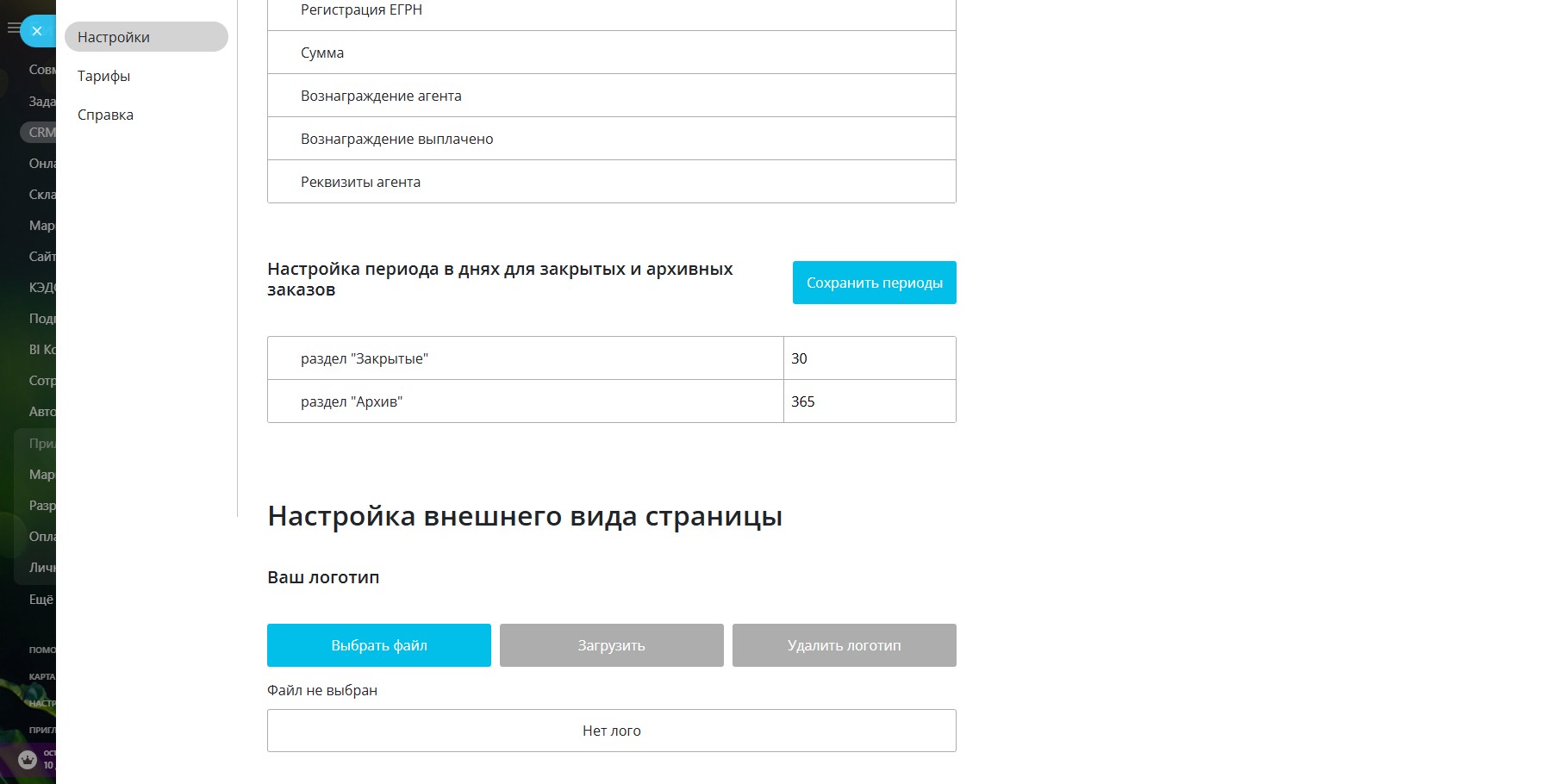 Для тарифа ПРОФ вы можете настроить логотип и подпись. Это изображение, которое будет выводиться над справкой по заказу и текстовая подпись под списком полей. А также вы можете вывести в справку пользовательские поля из сделки.