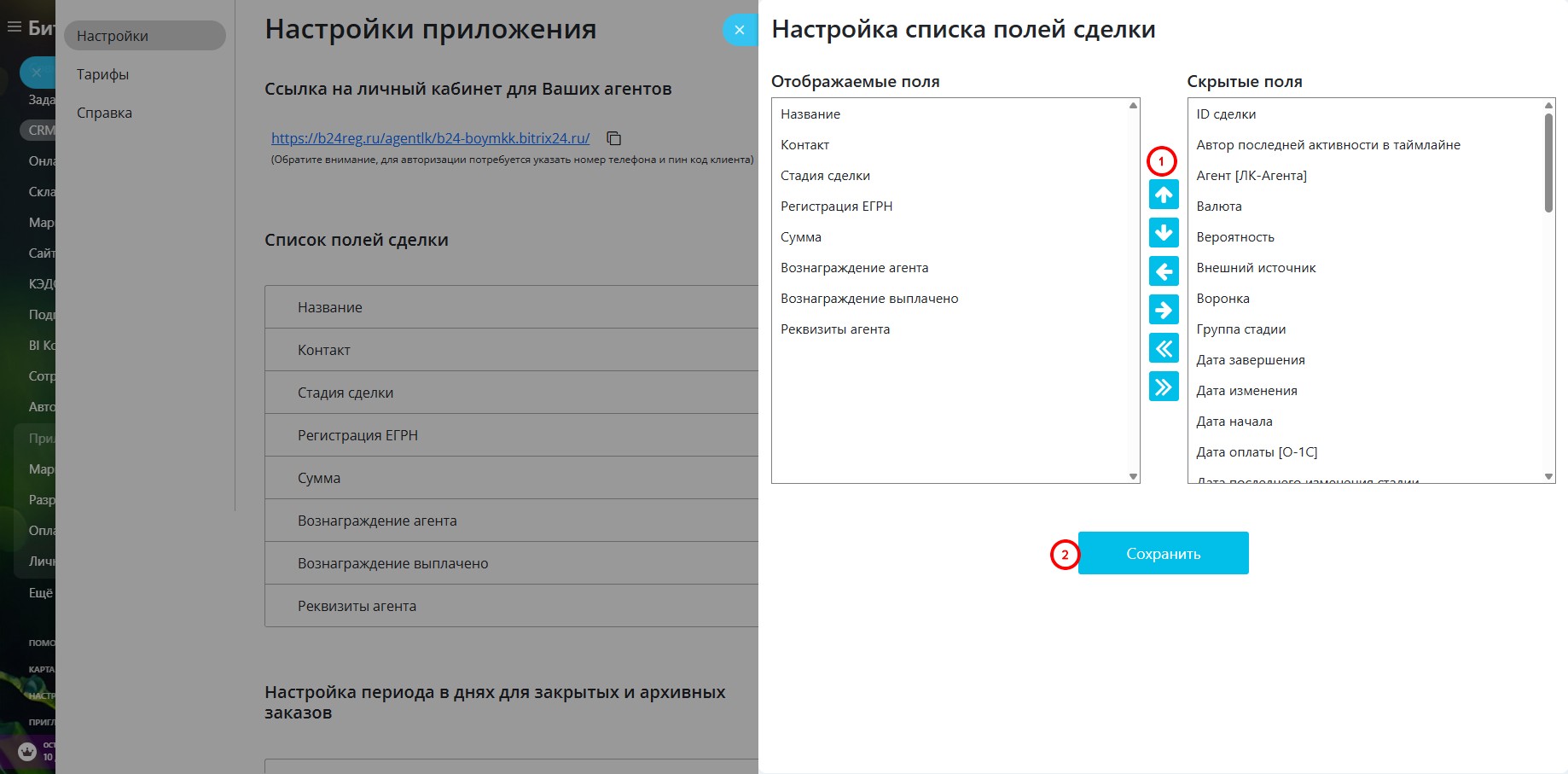 Обратите внимание, у всех личных кабинетов агентов CRM единая ссылка для входа, она доступна в настройке приложения и ее можно скопировать в буфер обмена.