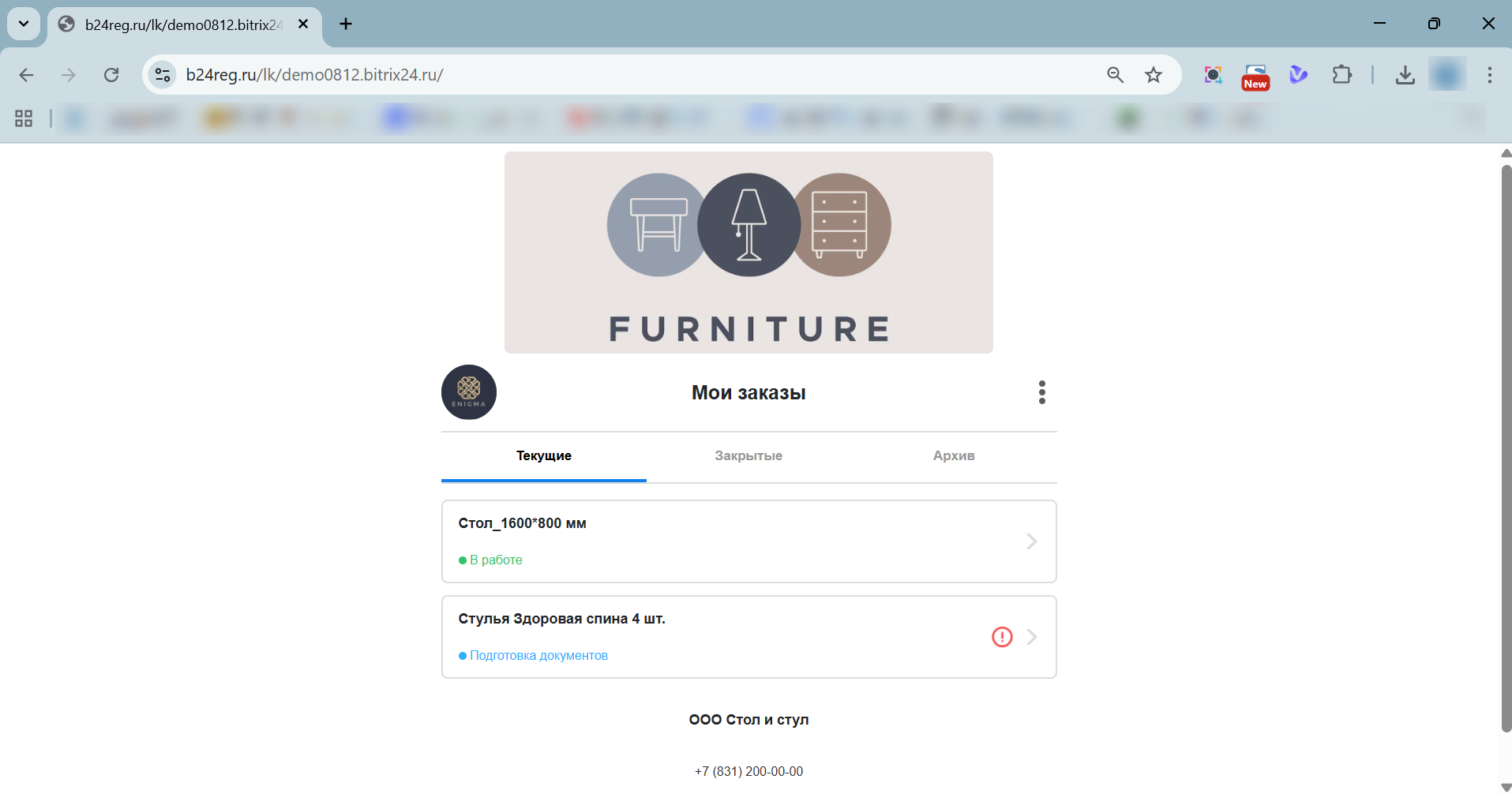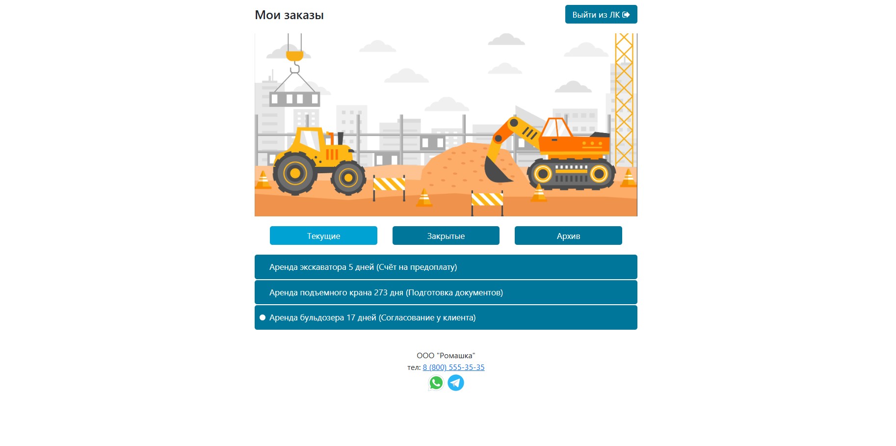 Вот как видит клиент личный кабинет по заказам из CRM системы Битрикс24.