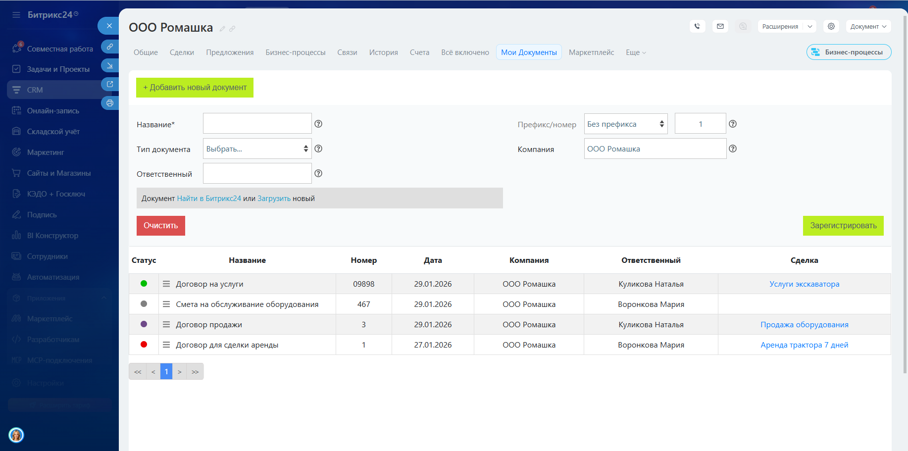 Далее вы работаете с документами в Сделке или в Смарт-процессе ровно также, как в приложении "Мои документы".