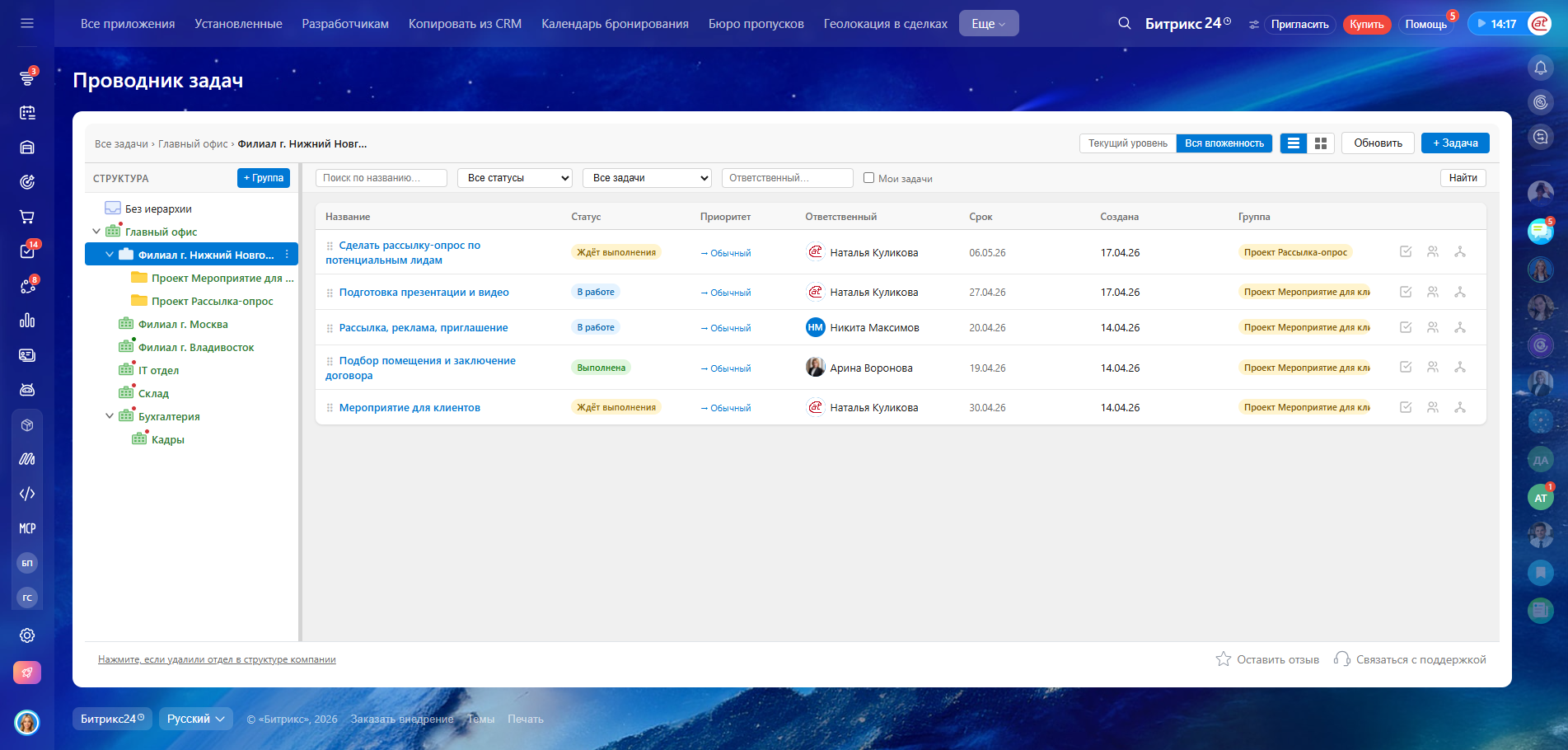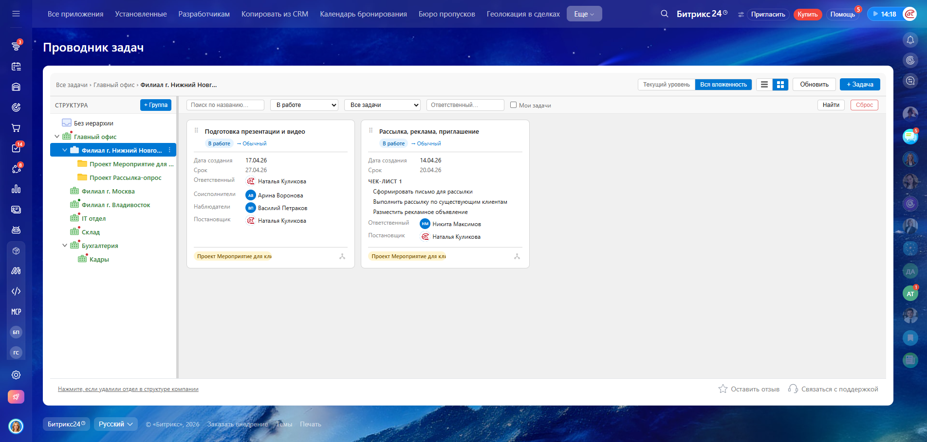 В результате вы получаете более наглядную и управляемую систему работы с задачами — особенно в компаниях со сложной структурой и большим количеством проектов.