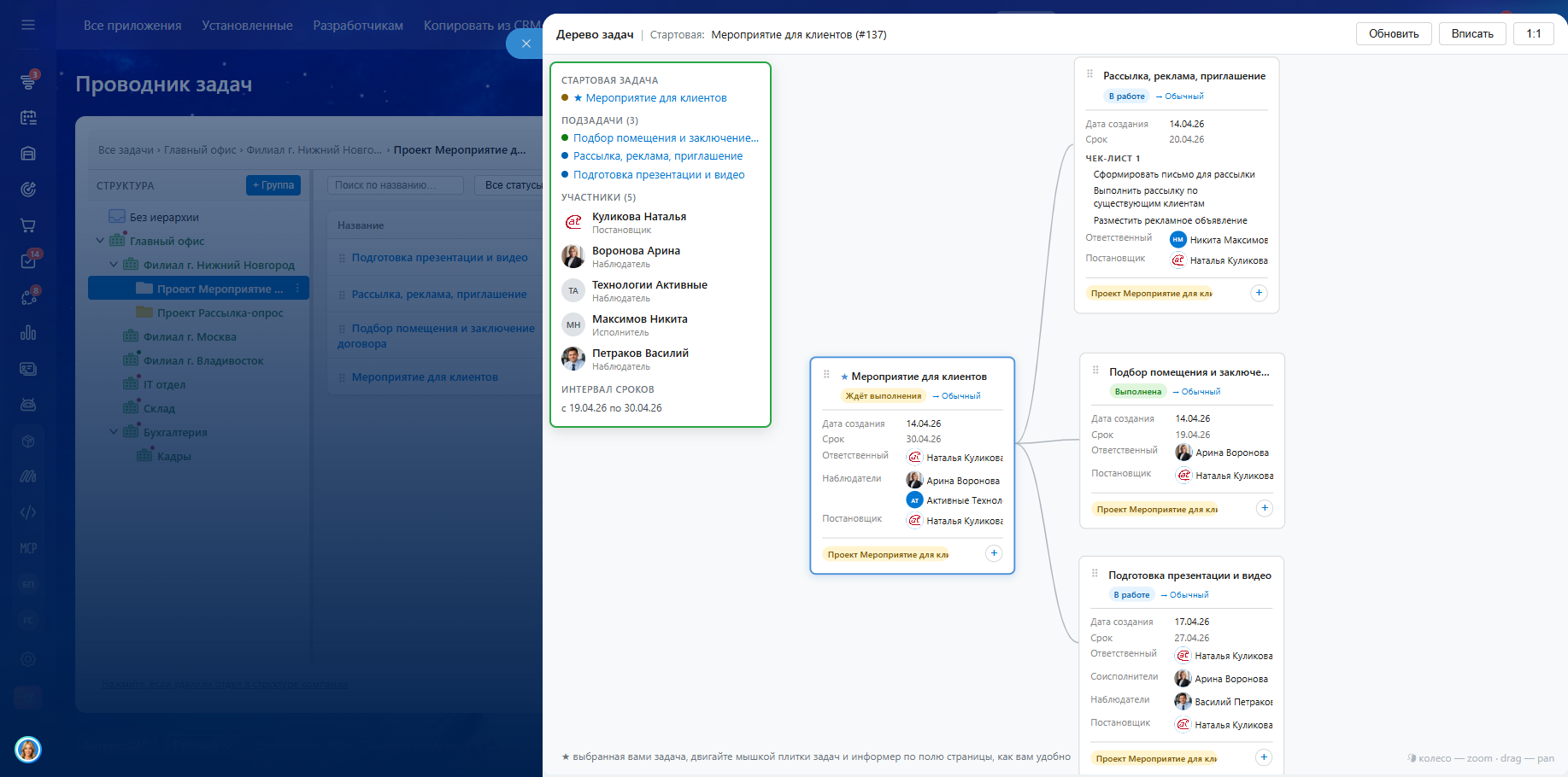 Проводник задач — удобный контроль задач через структуру компании или через любое иерархическое дерево