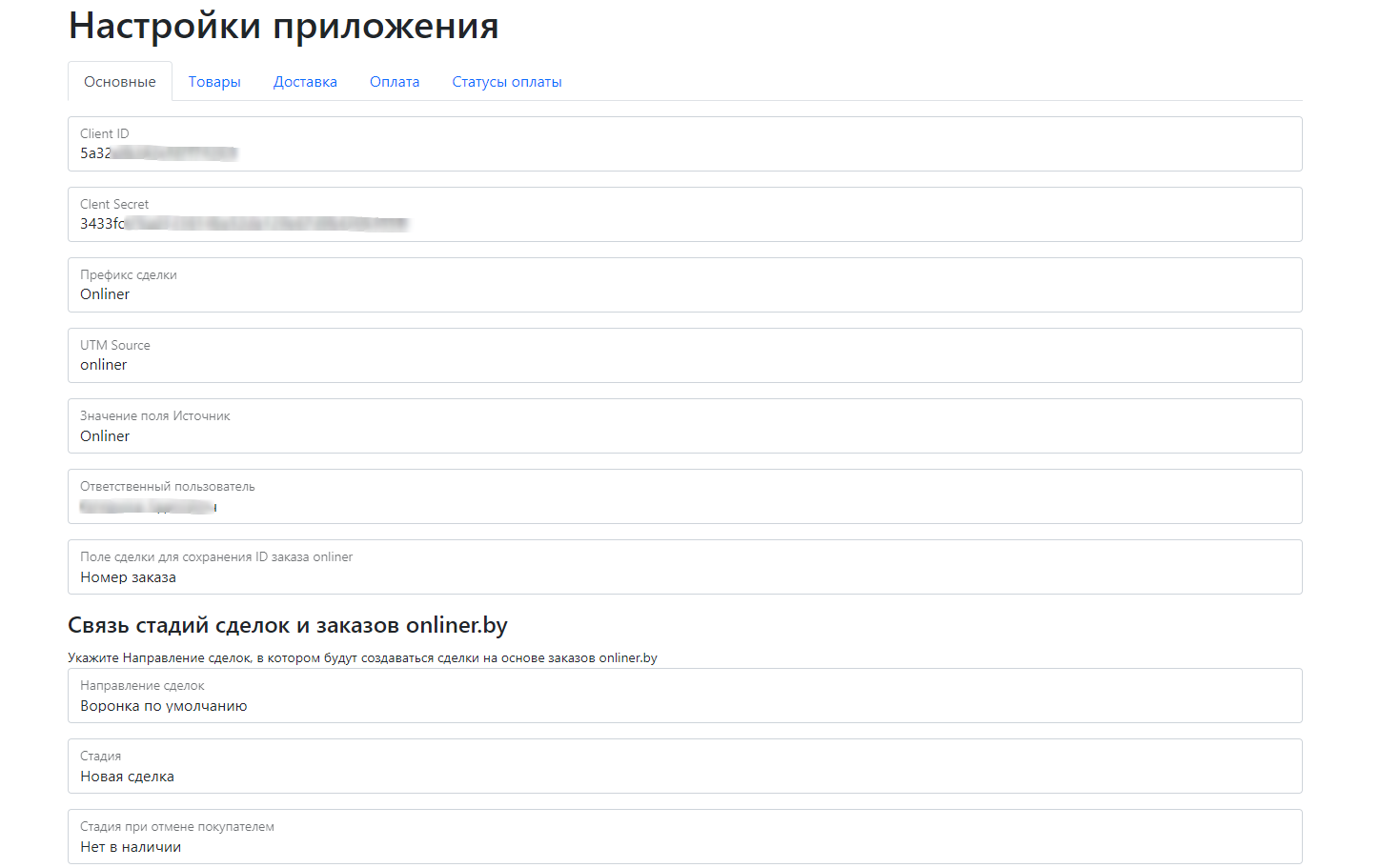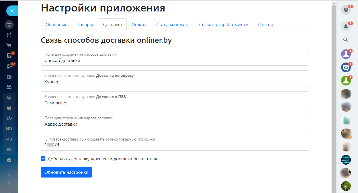 Позволяет настроить интеграцию заказов в onliner.by с Битрикс24