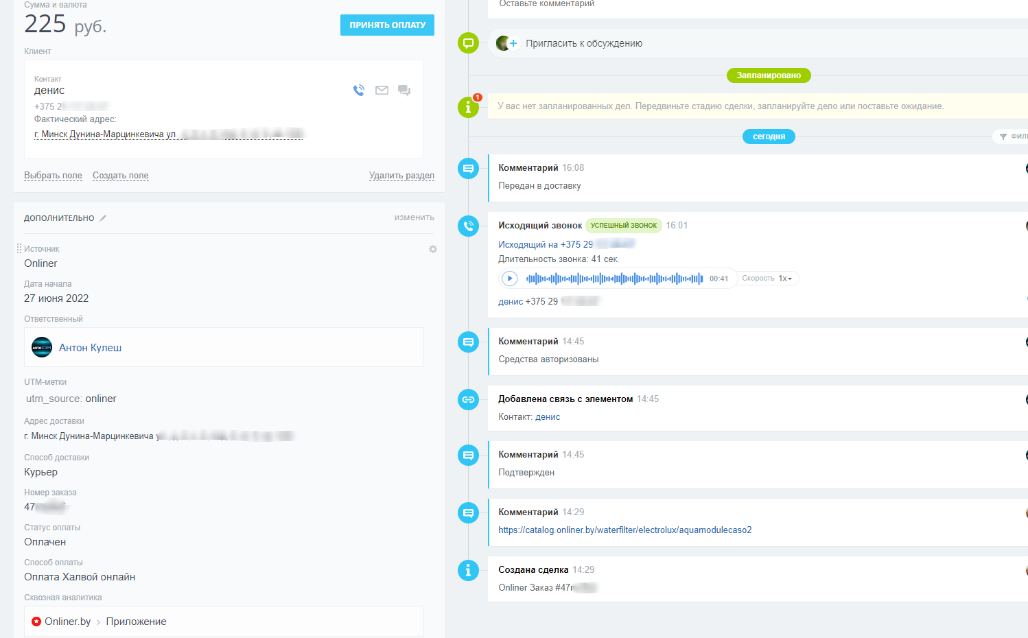 Передача заказов из onliner.by в Битрикс24
