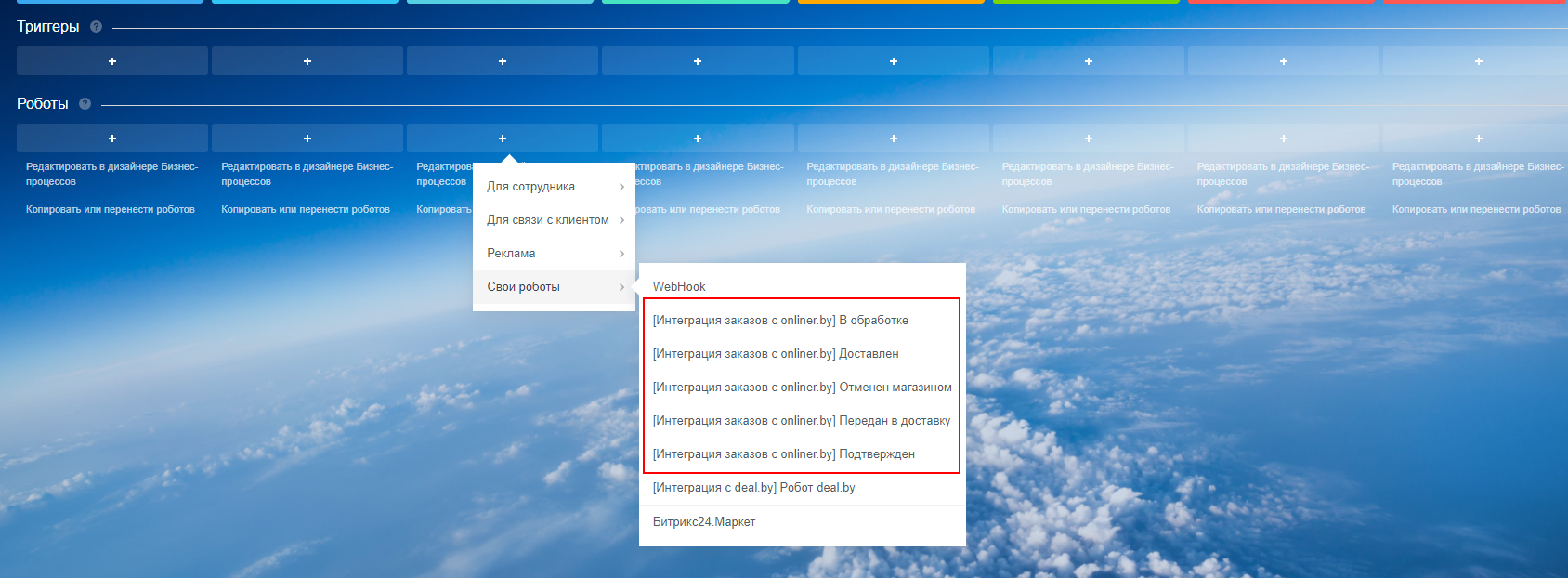 Передача статусов заказов в onliner в зависимости от стадии сделки Битркс24 ;
