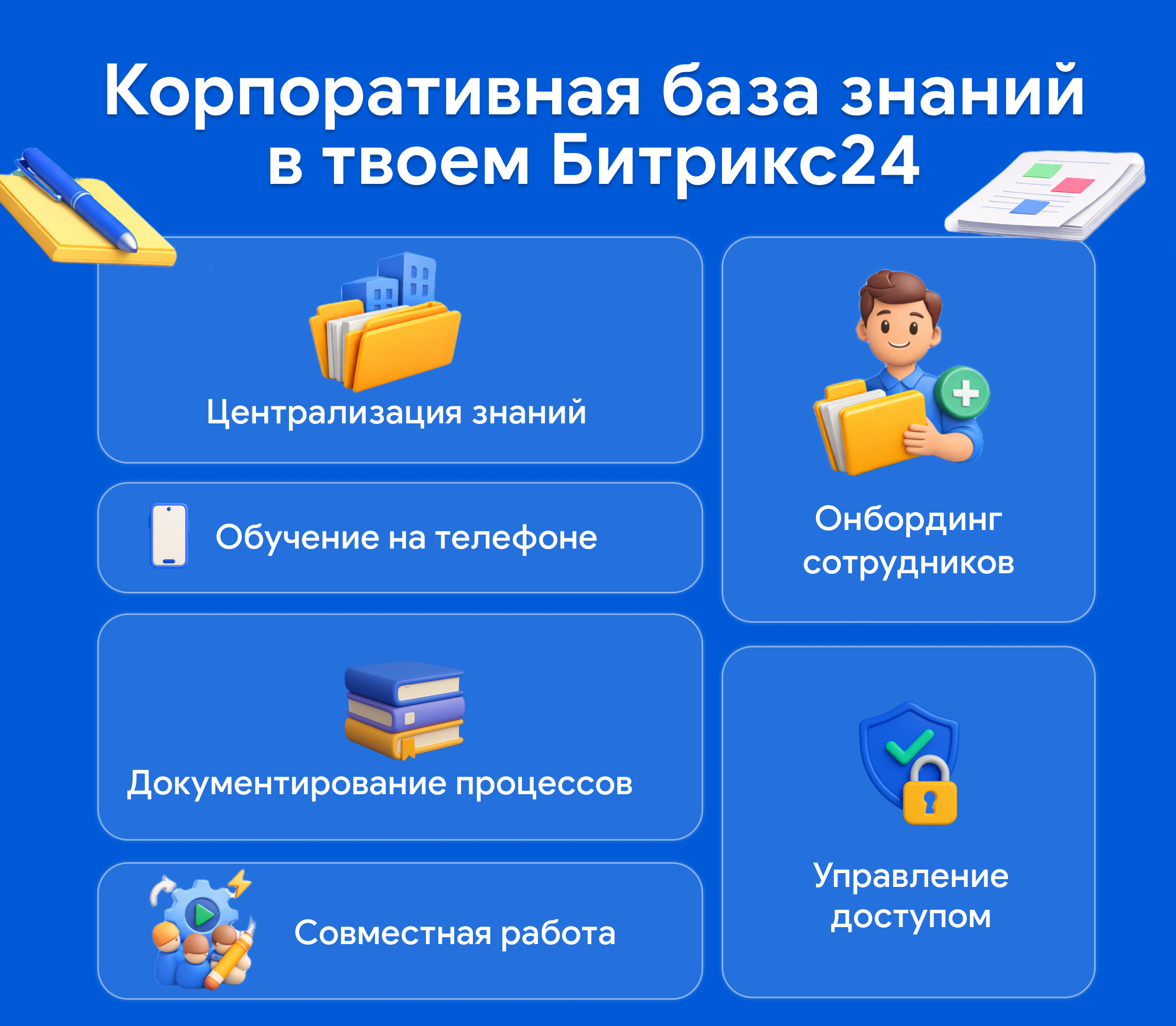 • Онбординг сотрудников — быстрое погружение новых членов команды в рабочие процессы