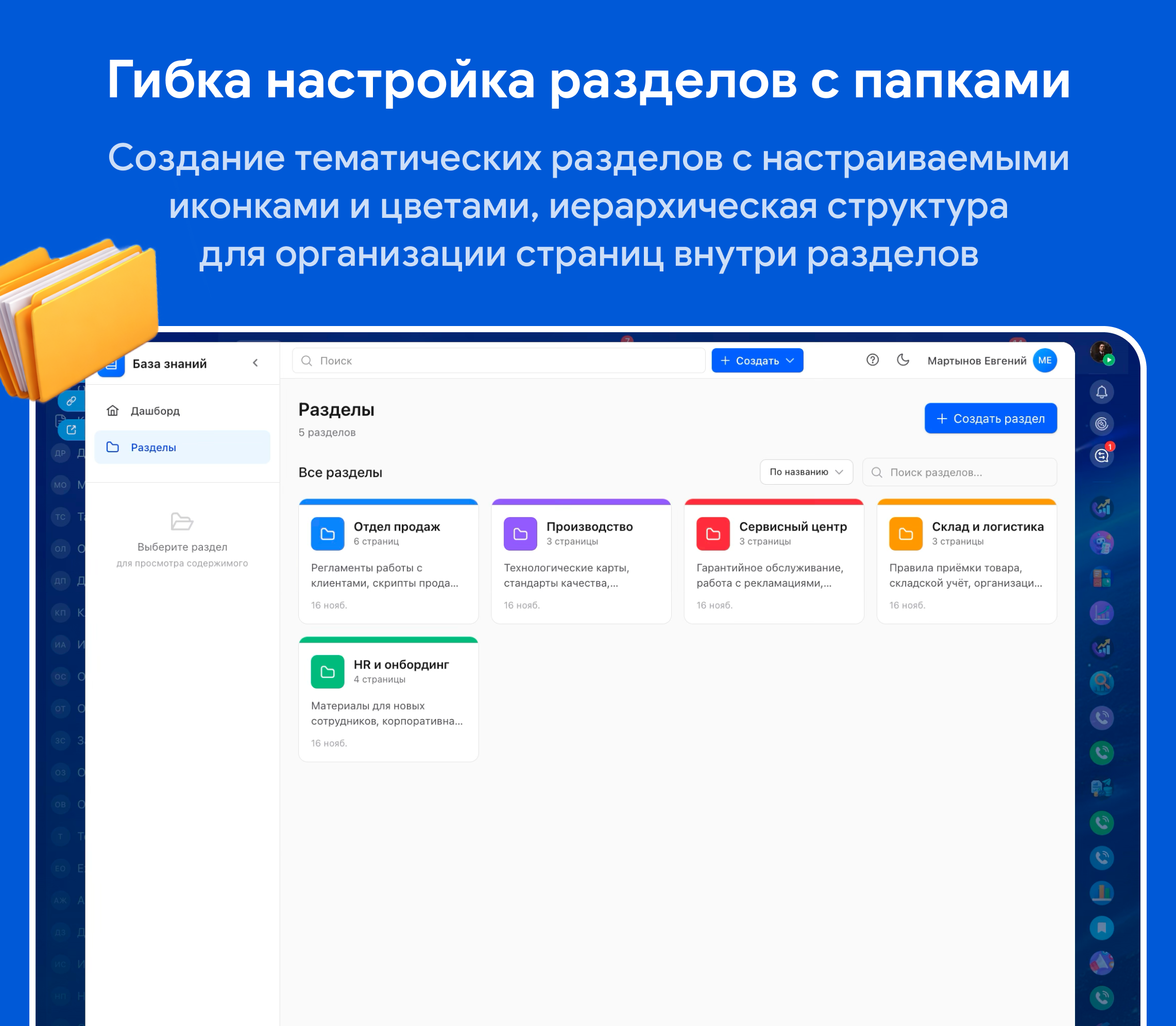 • Папки — иерархическая структура для организации страниц внутри разделов