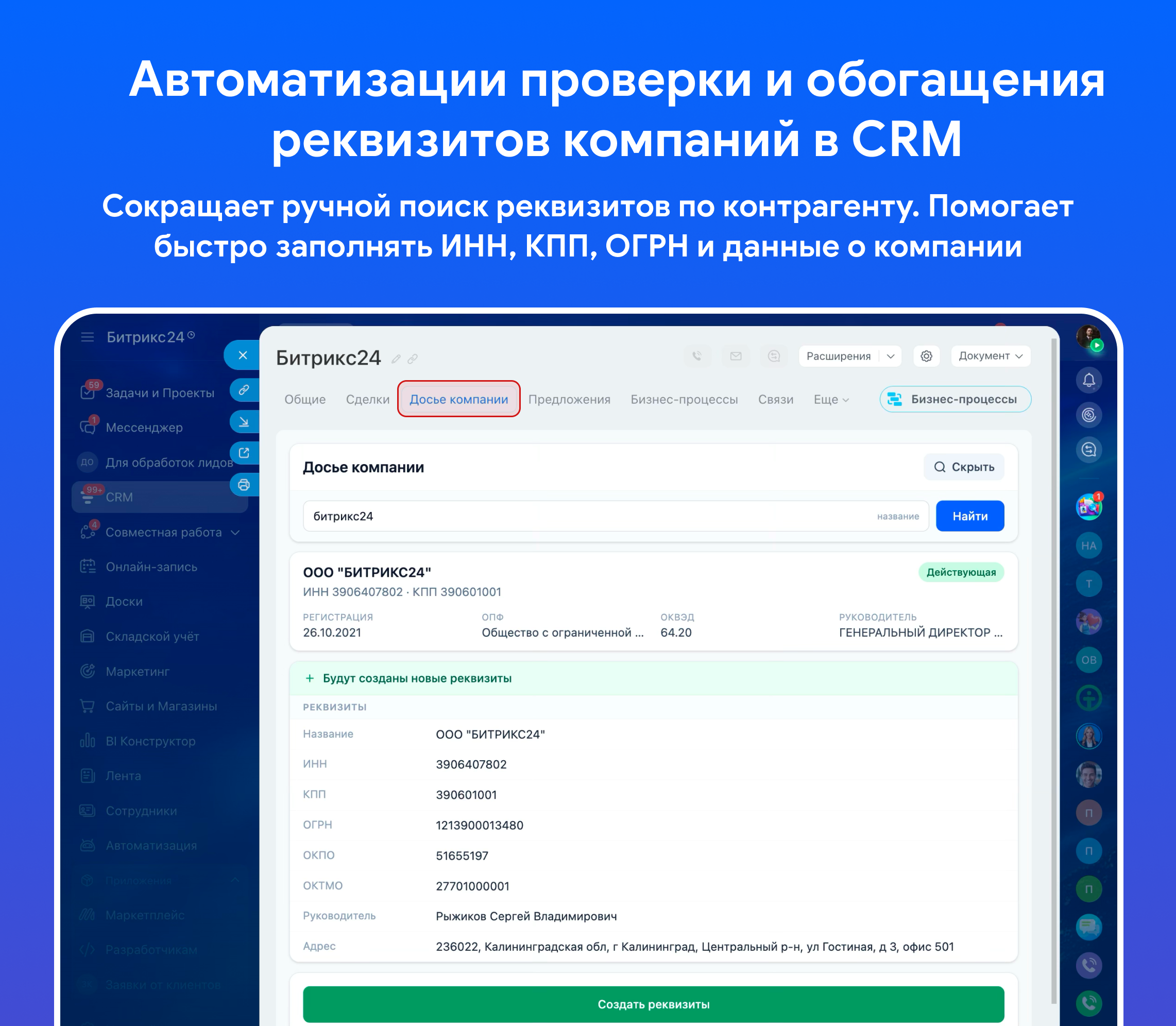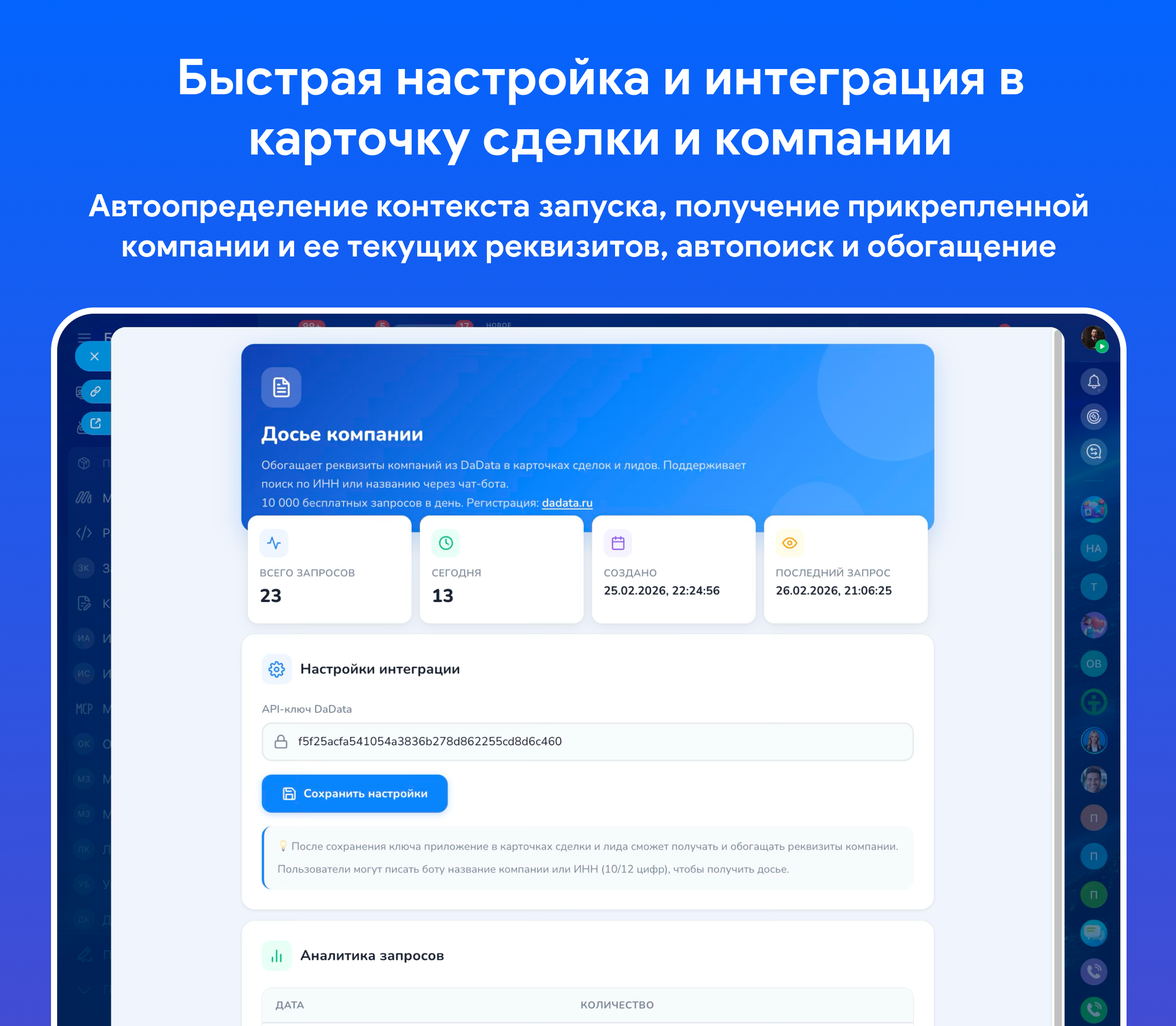 Приложение для автоматизации проверки и обогащения реквизитов компаний в CRM.