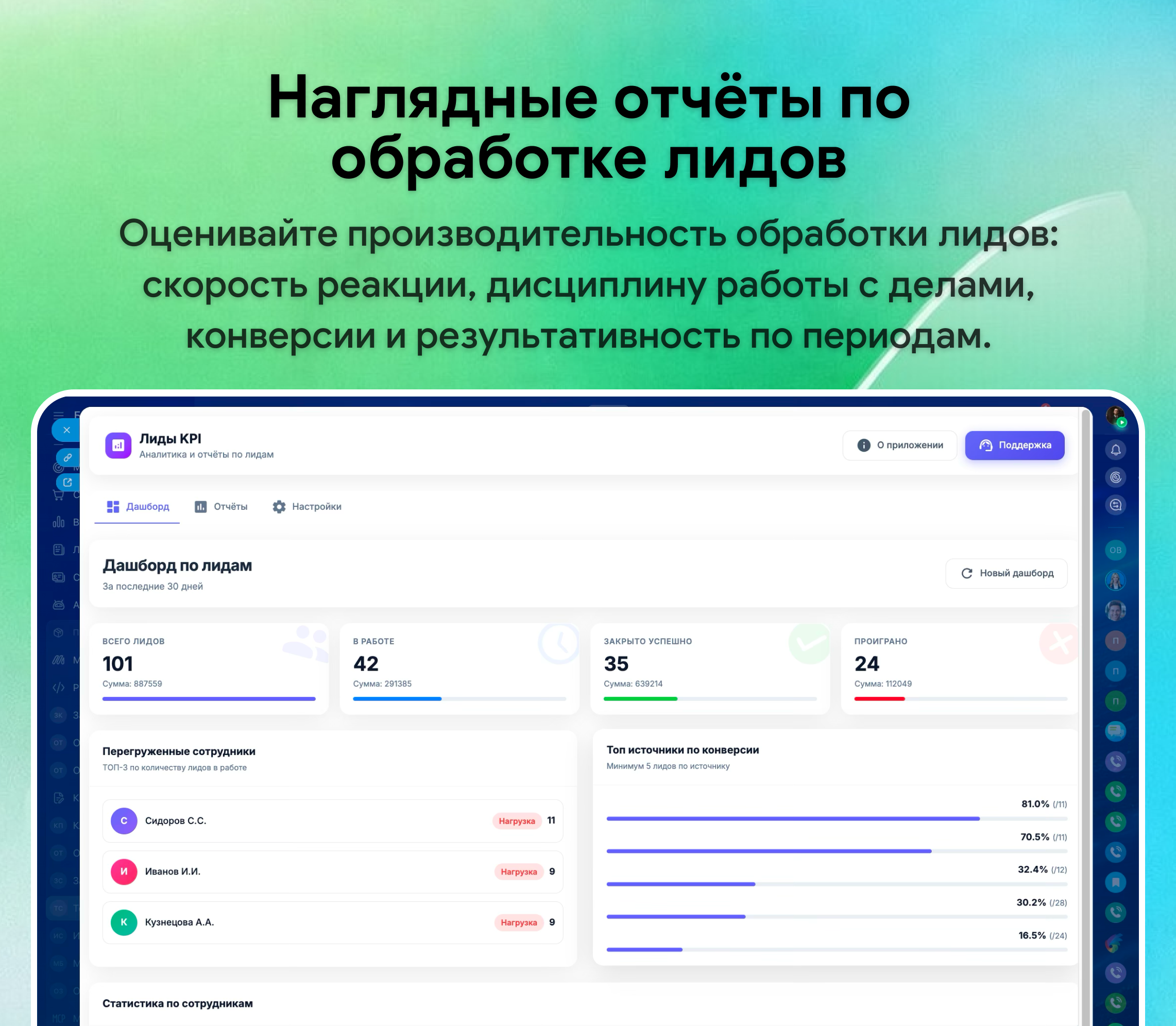 Аналитическое приложение для контроля качества и эффективности обработки лидов в CRM.