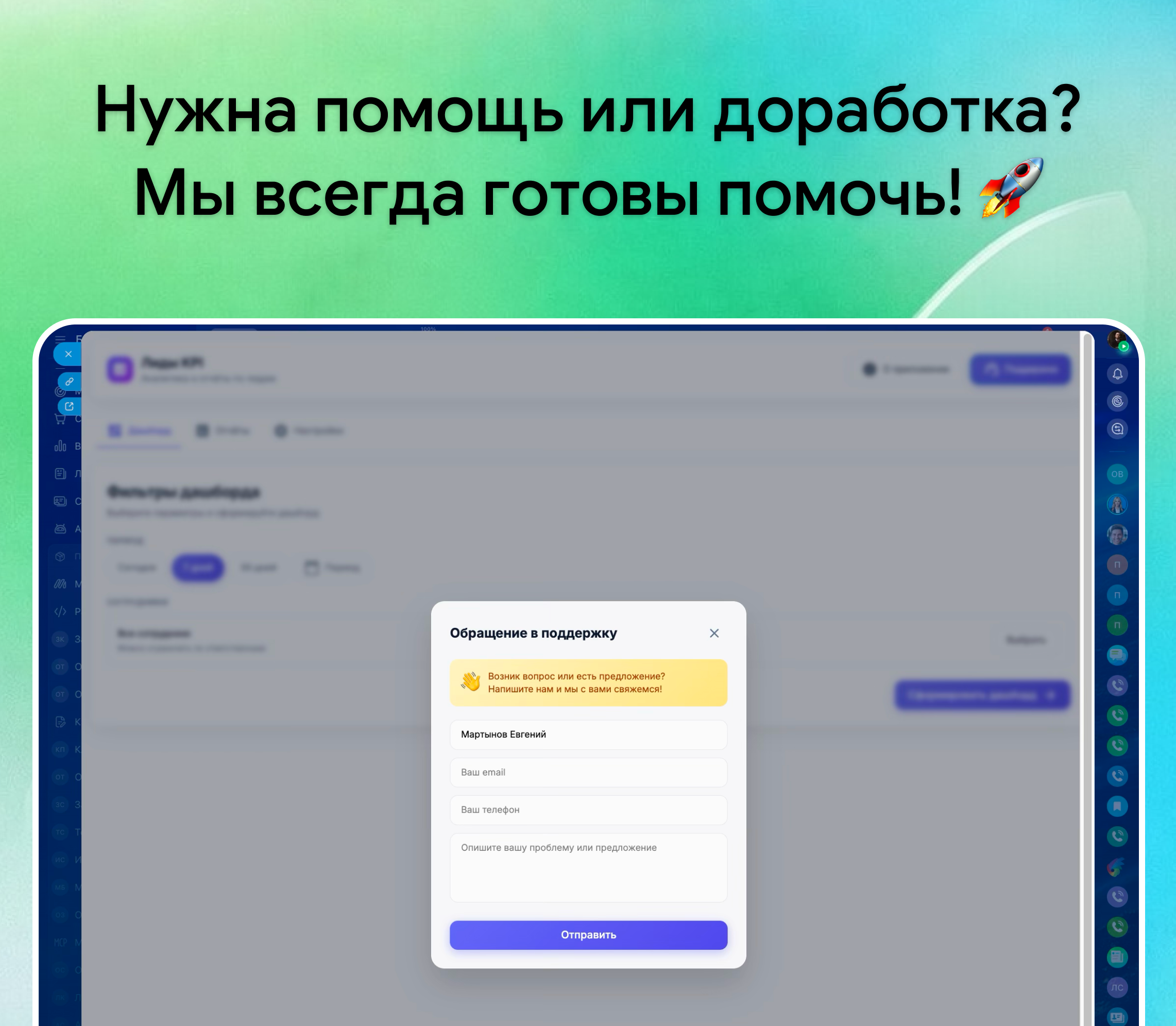 - Контроль скорости реакции на новые лиды и соблюдения регламента обработки.