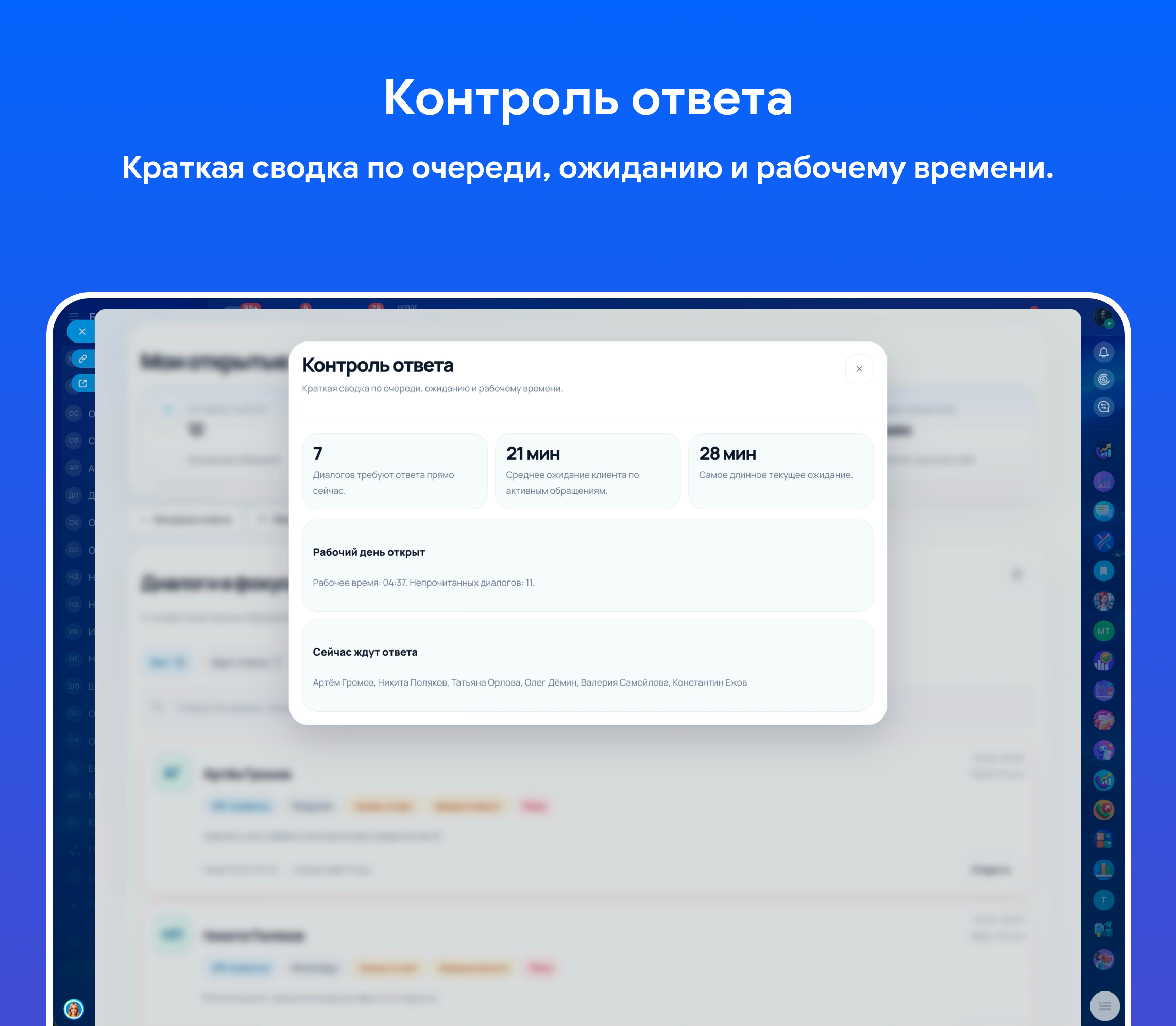 • помогает быстро находить диалоги, где клиент уже ждёт ответа;