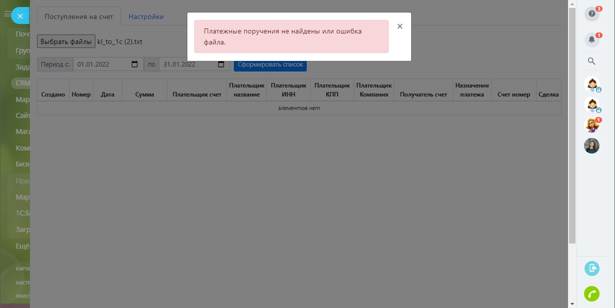 Если при загрузке файлов вы видите ошибку “Платежные поручения не найдены или ошибка файла”