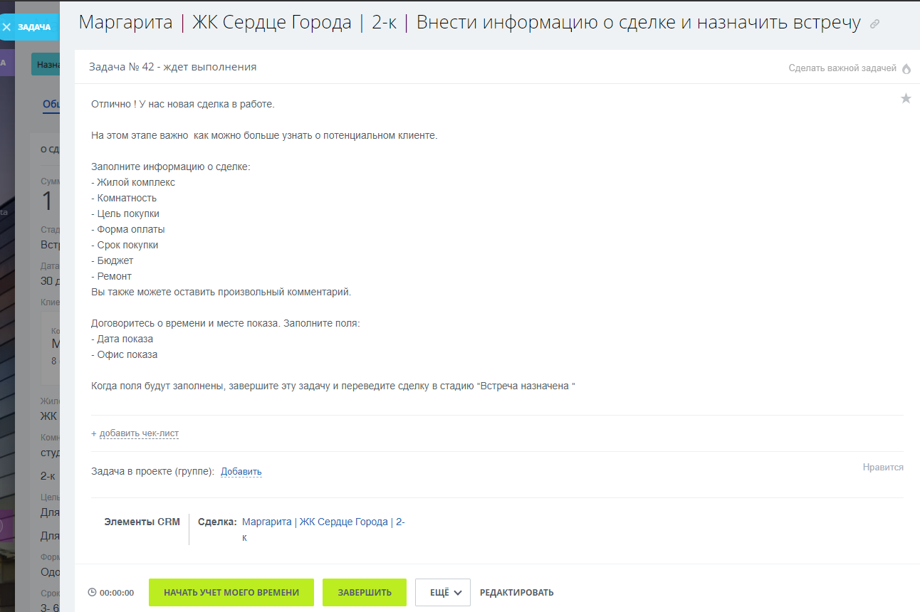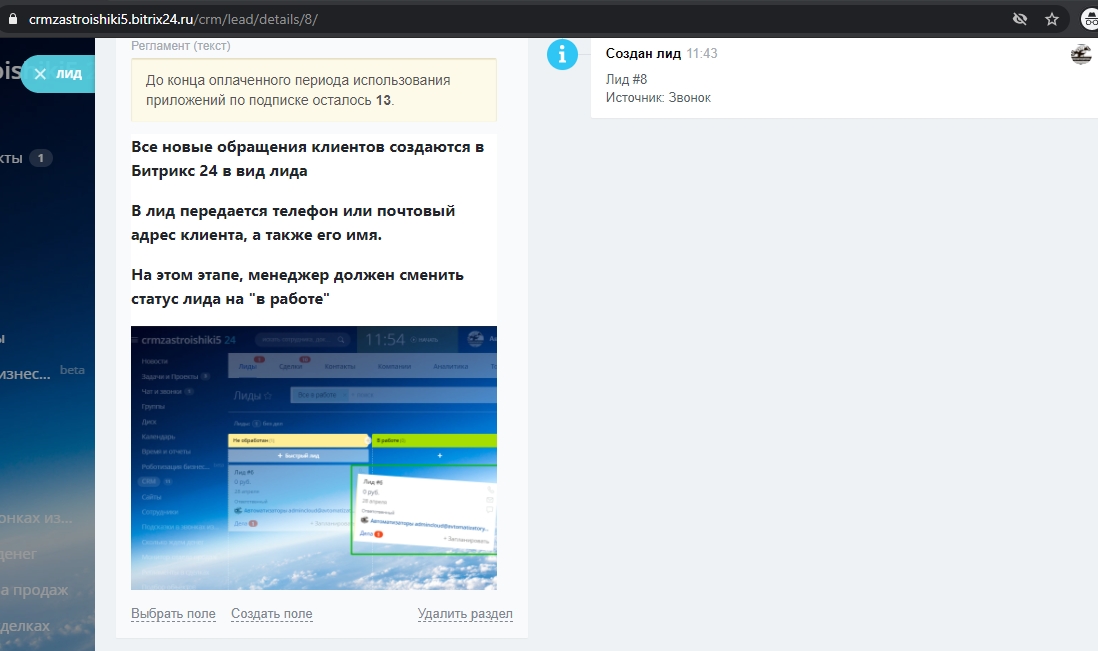 Вашим менеджерам также доступна инструкция по работе с лидами благодаря приложению “Регламенты в сделках”