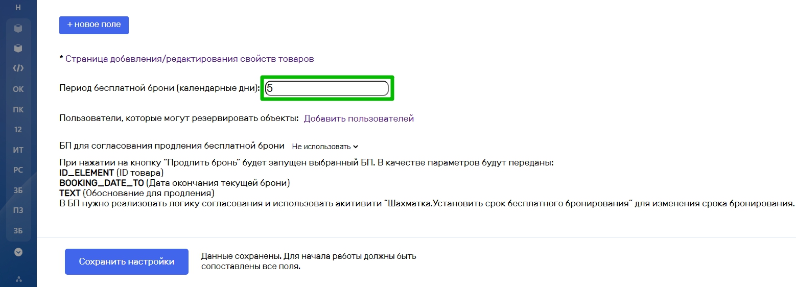 Дополнительно можно настроить Бизнес-процесс на согласование продления бесплатной брони. Например, после установки бесплатной брони руководителю будет создано задание бизнес-процесса на подтверждение бесплатного бронирования по запросу от сотрудника.