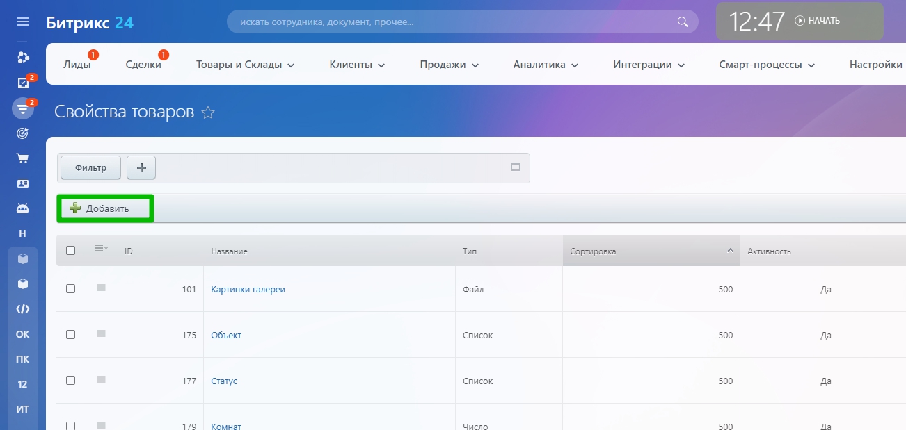 Добавьте недостающие поля кликнув по кнопке “Добавить”
