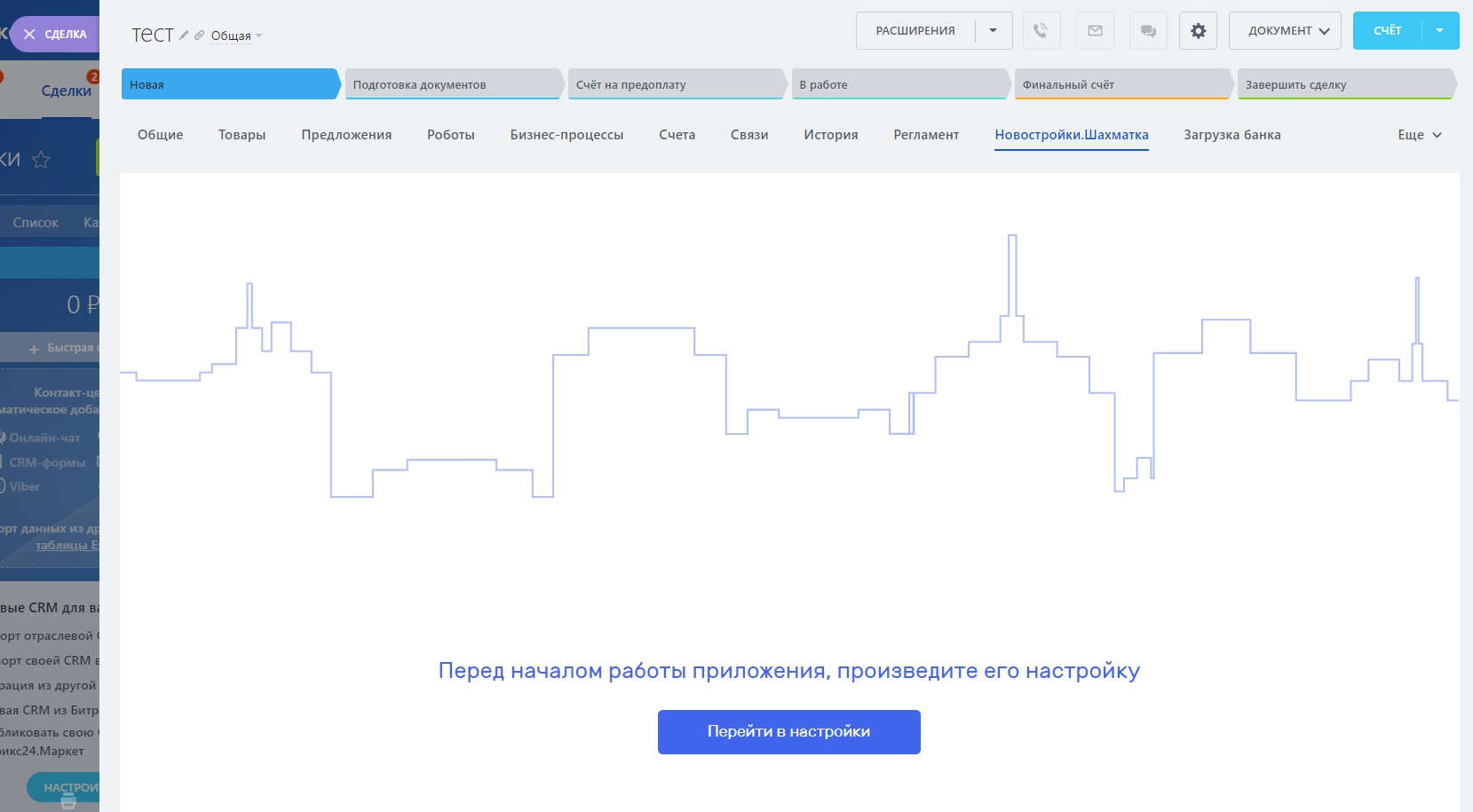 Необходимо перейти в карточку сделки на вкладку “Новостройки.Шахматка”