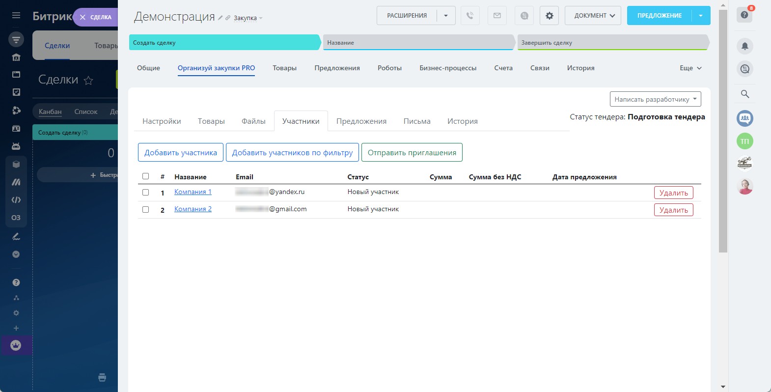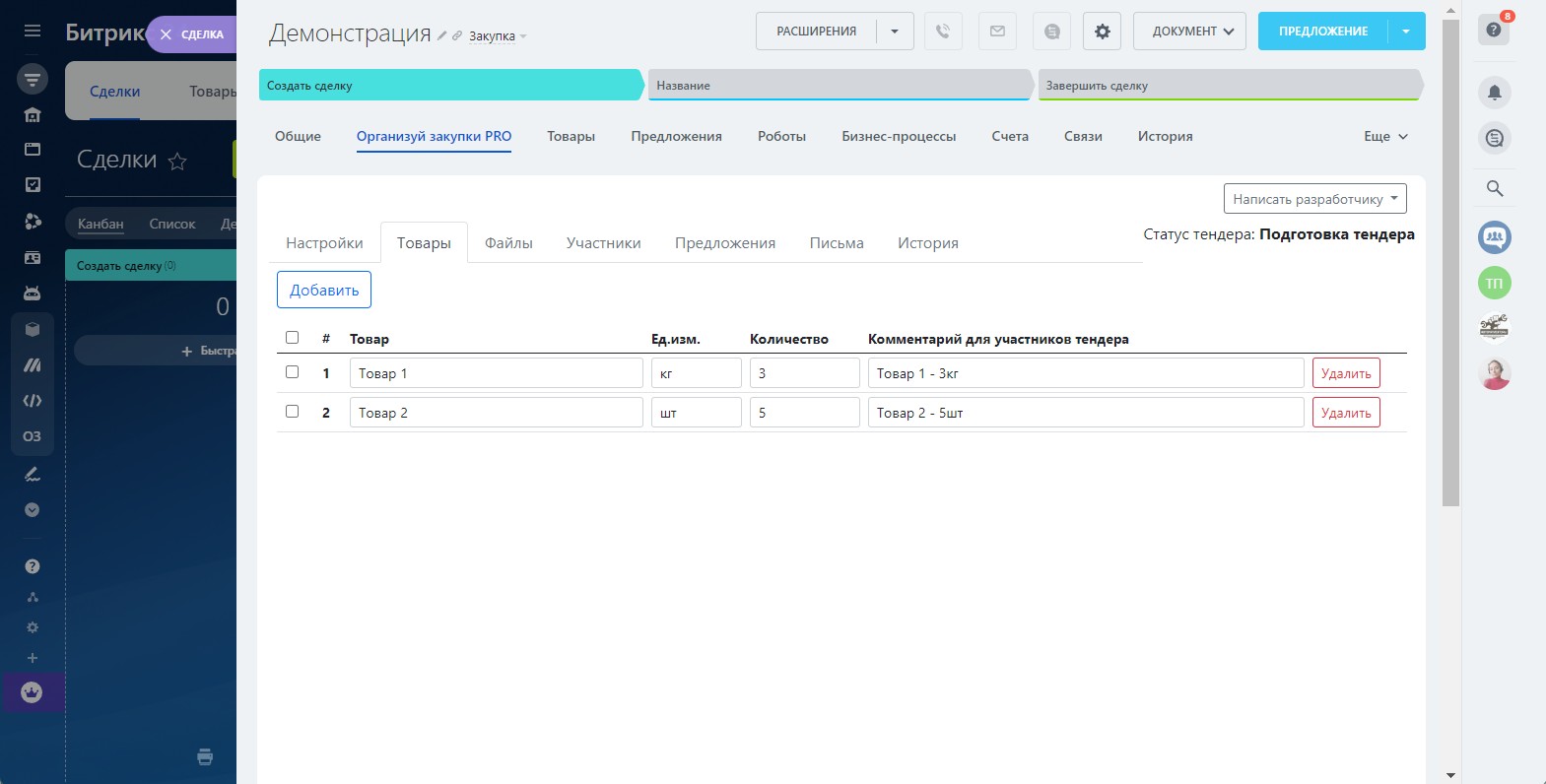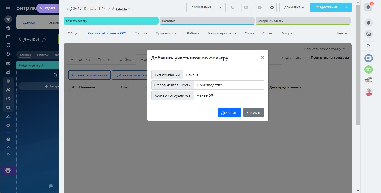 Приложение “Организуй закупки PRO” поможет Вам организовать закупки на конкурсной основе на вашем портале Битрикс24.