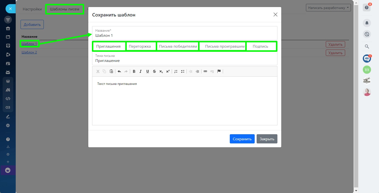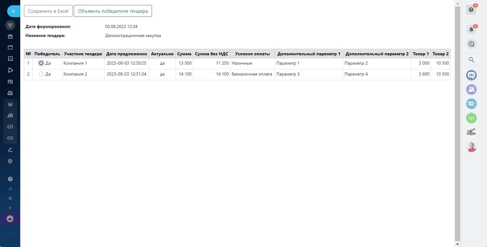 Выбрав победителя тендера, вы автоматически отправите письма всем участникам с результатом торгов.