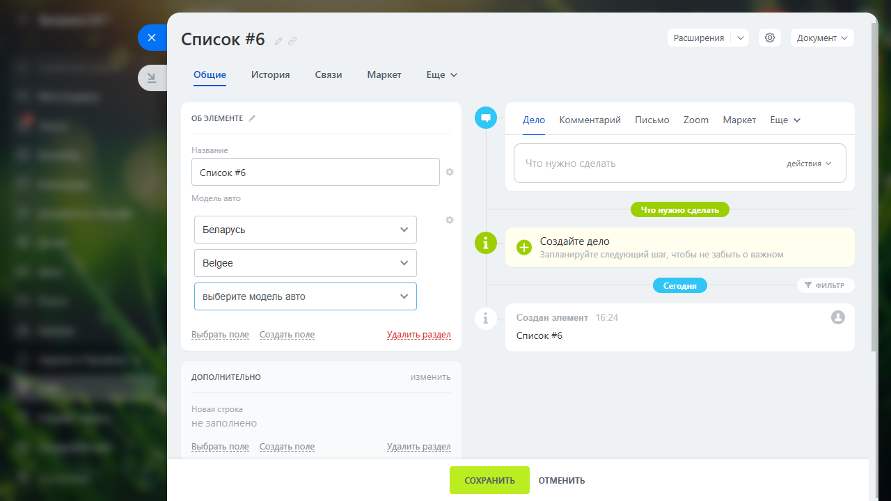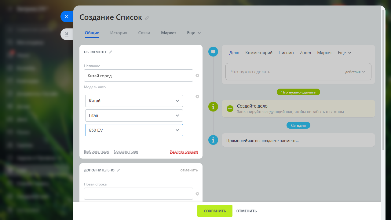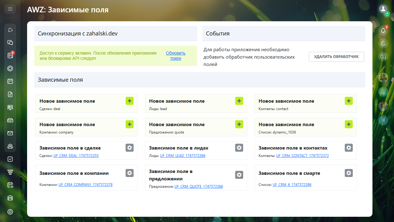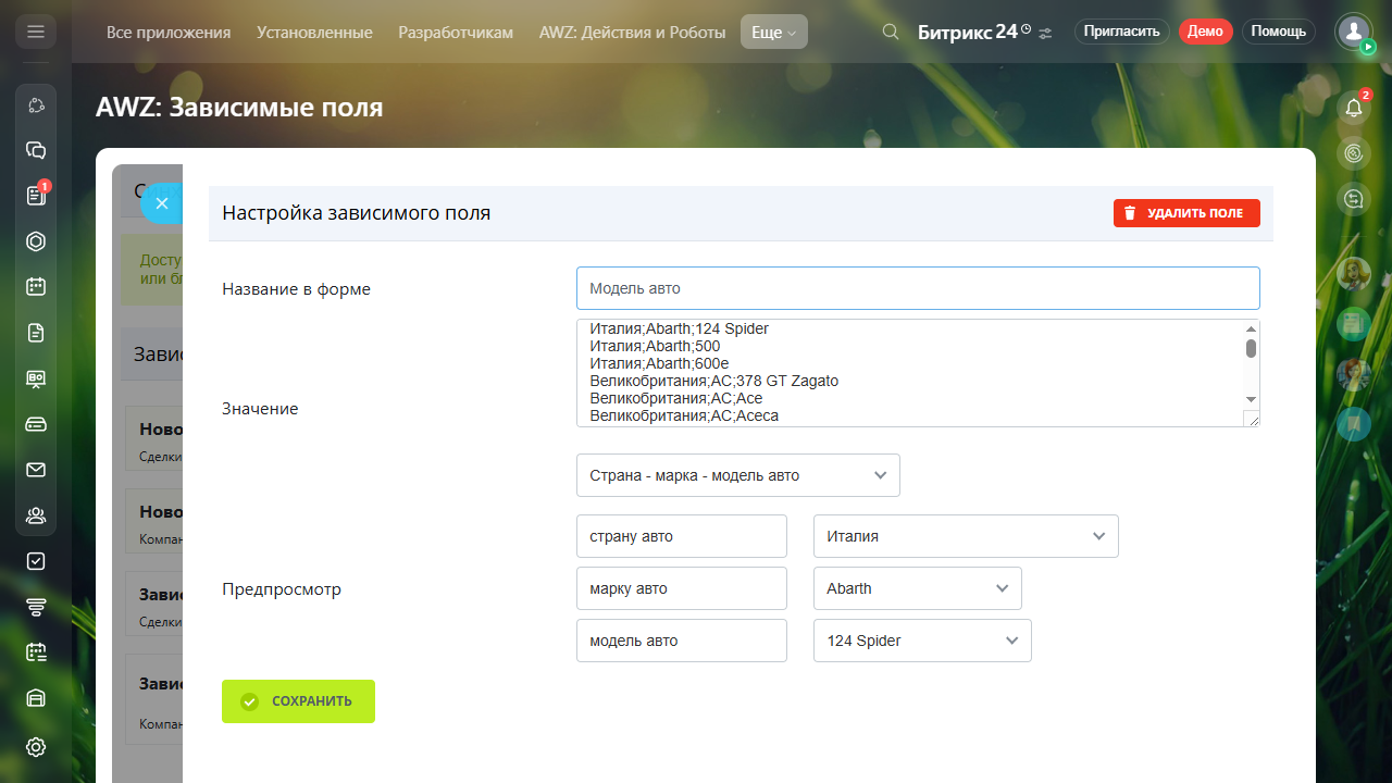 Добавление зависимых списочных полей в карточки сделок, лидов, компаний, контактов, предложений, смарт процессов.