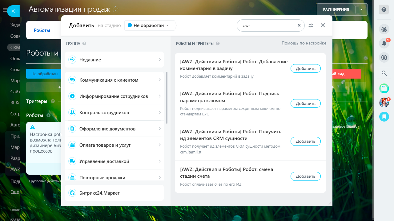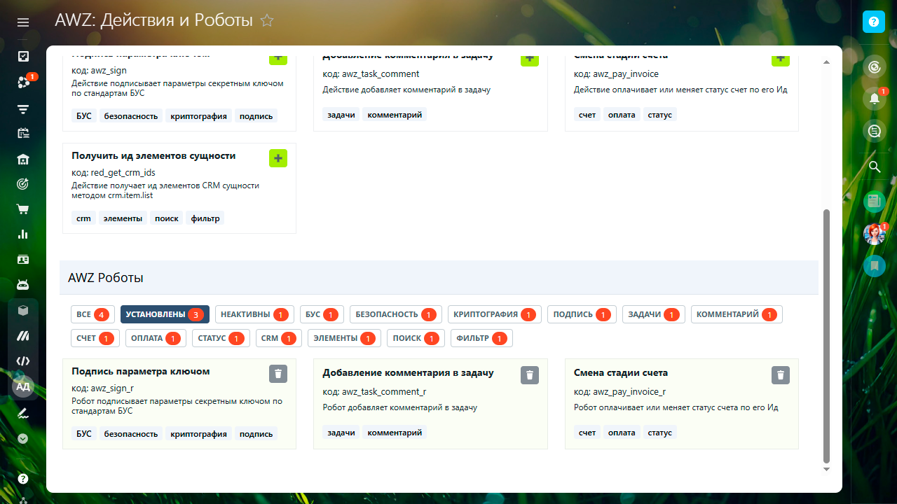 - Роботы в CRM - Профессиональный, Стандартный, Базовый;
