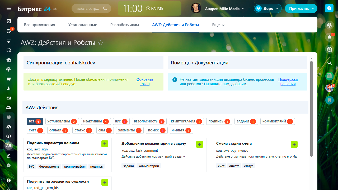 Действие позволяет сформировать открытую подпись параметров и защитить от подмены. Например вы можете передать в ссылке Ид элемента crm и на принимающей стороне проверить целостность данных. - Добавление комментария в задачу.